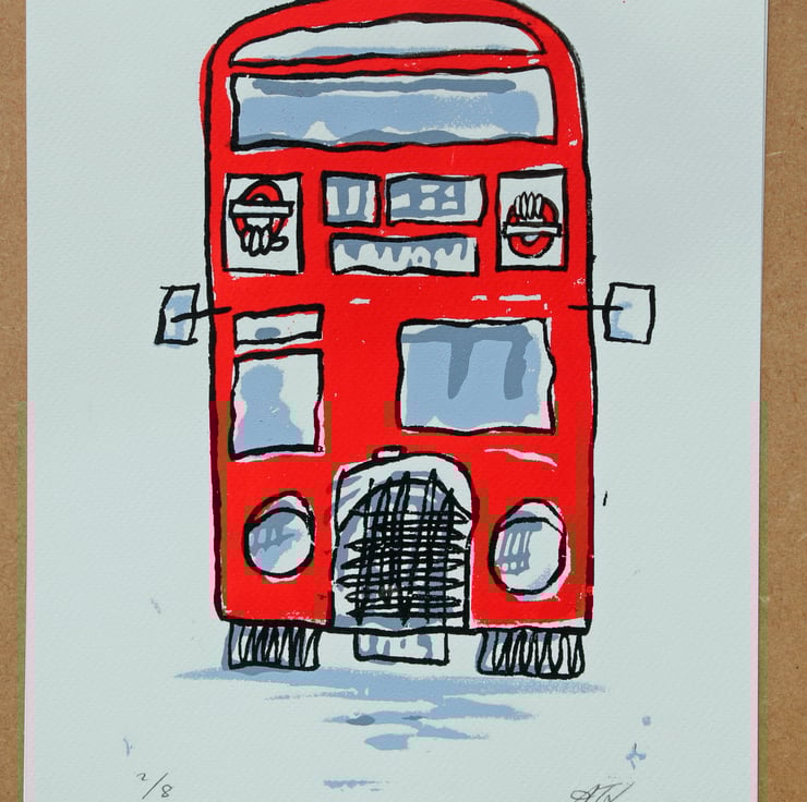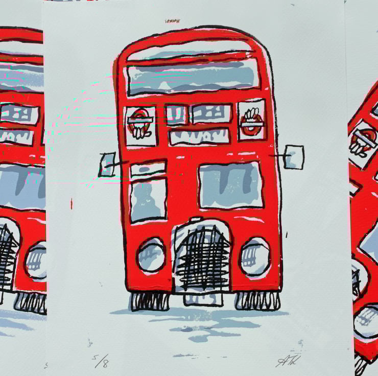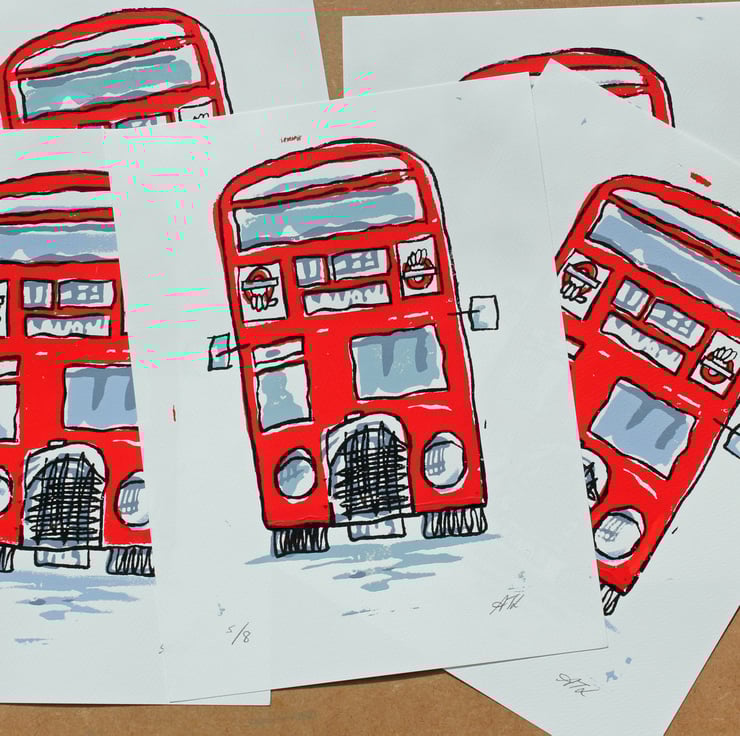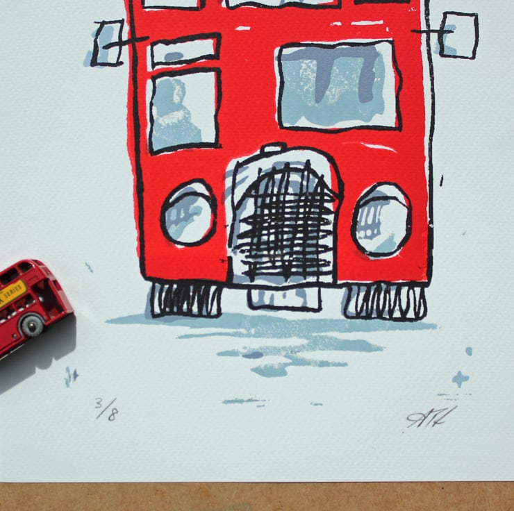 I originally did this bus as a small pen and ink and watercolour illustration and wanted to try and capture the same look with a screen print.