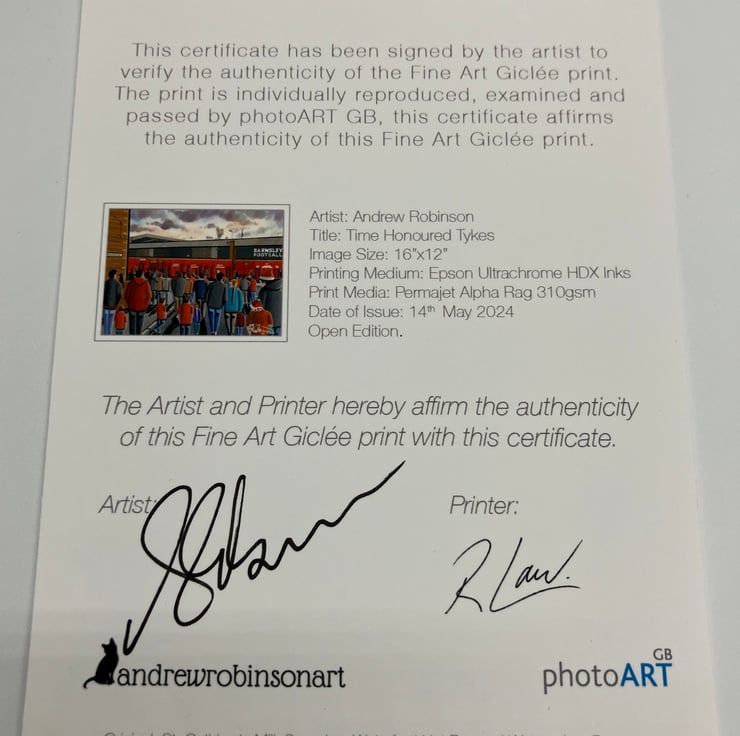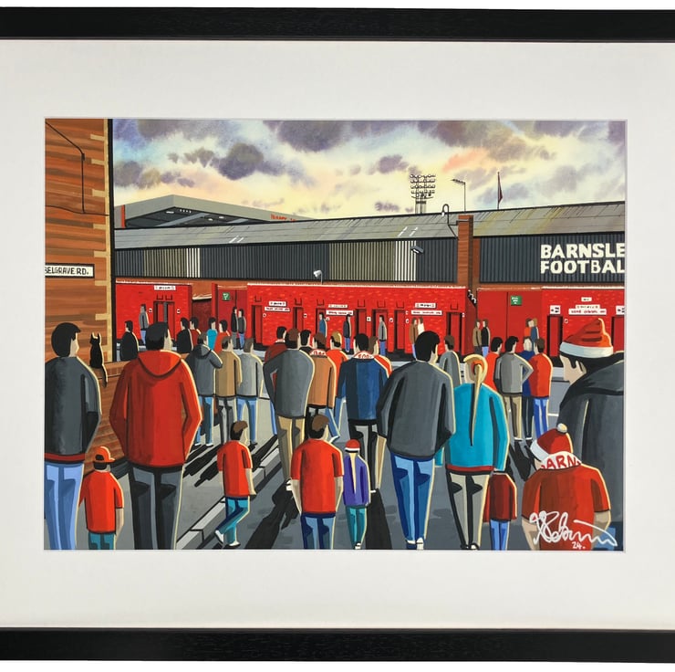 Titled ‘Time Honoured Tykes’ this is a unique Barnsley print direct from myself the artist. My artworks are a celebration of the match day experience and of stadium architecture.