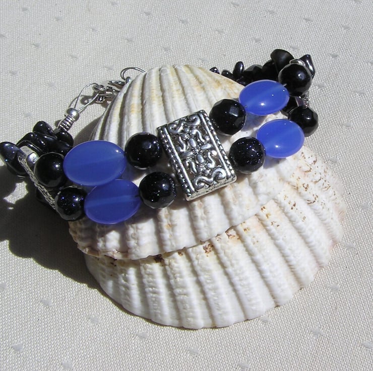 Blue Goldstone & Blue Jade Gemstone Bracelet