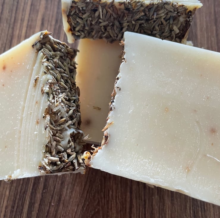 Sodium Olivate, Sodium Cocoate, Sodium Apricot Kernelate, Sodium Shea Butterate, Aqua, Glycerin, Lavandula Angustifolia Oil, Lavandula Officinalis Flower, Beta Vulgaris Root Powder Geraniol, Limonene, Linalool