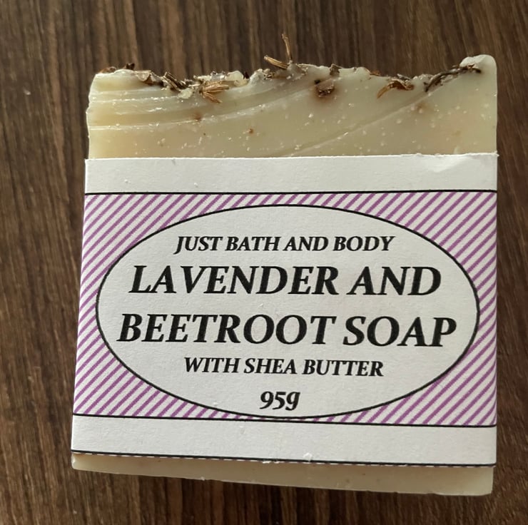 With a strong lavender scent and decorated with dry lavender pieces this soap also contains beetroot powder which is great for maintaining healthy skin. Contains Shea Butter.