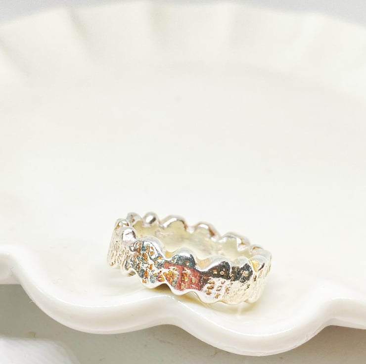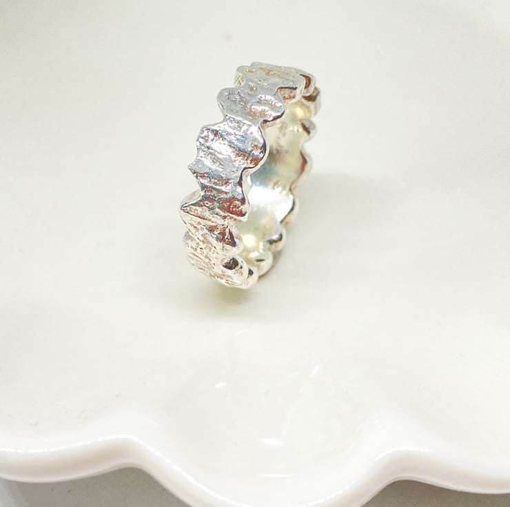 Chunky Textured Handmade Silver Ring. This striking piece boasts a robust design with an organic texture, giving it a unique and rugged charm. Crafted from sterling silver, each ring is meticulously handmade, ensuring no two are exactly alike. The substantial weight and bold presence make it an ideal accessory for those who appreciate artisanal craftsmanship and distinctive style.