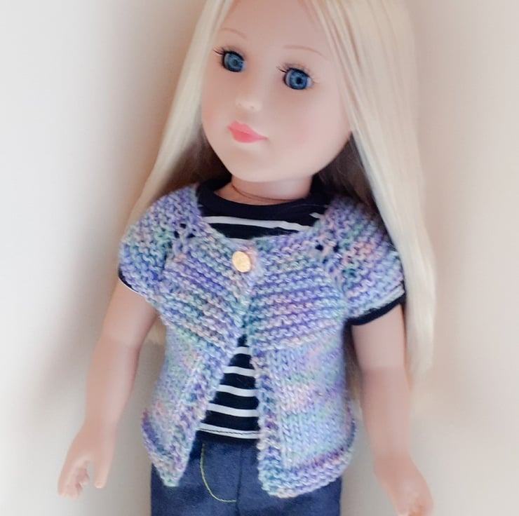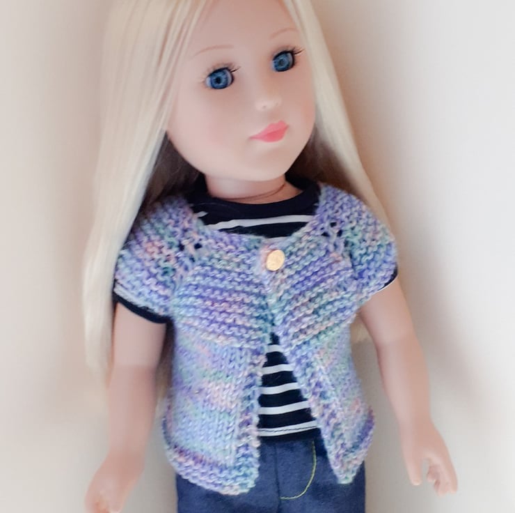 This hand knit PATTERN is for a cardigan for a Doll. To fit doll Height 46 cm or 18 inches. The cardigan is knitted in double knitting yarn using 3.25 mm and 4 mm knitting needles and is knit flat and seamed.
