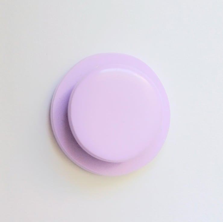 Separate top magnet from the bottom magnet by sliding them sideways in opposite directions. Place the top magnet onto the front of the fabric and the smaller magnet behind it on the back of the fabric.