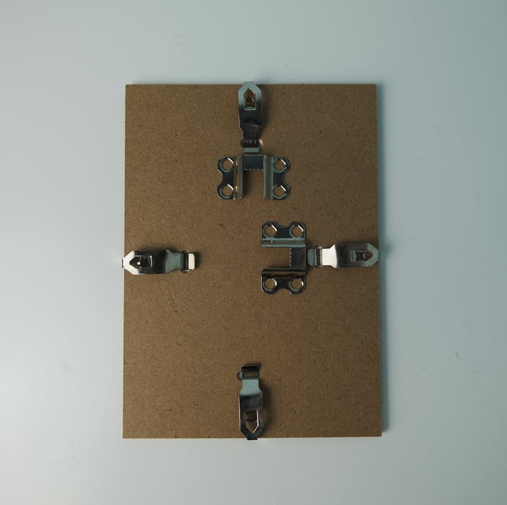 Measures 13cm by 18cm and comes with a hook on the back for easy wall hanging. Frame is not free standing.