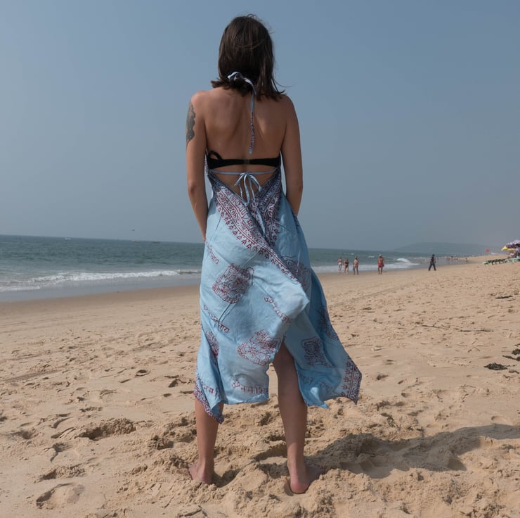 These Cotton Dresses come in Black Purple Green Blue and Yellow and come with different prints Om Shiva and Ganesha depending on the material available ( let me know if there is a specific print you would like and I will try to accommodate ). They all vary slightly but have the same hippie vagabond style just let me know which colours you would like when you order. .