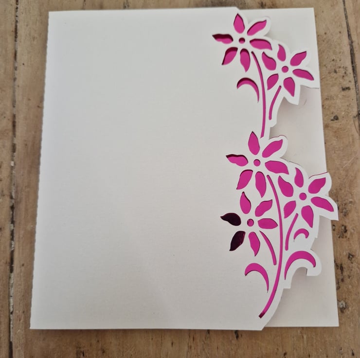 These cards are made using pearlised and foil or glitter layers. Each card measues 5" x 7" and a message of your choosing can be added to the front. Any colours can be used, just ask if theres a design you would like but can't see here