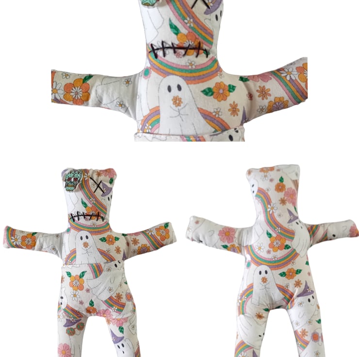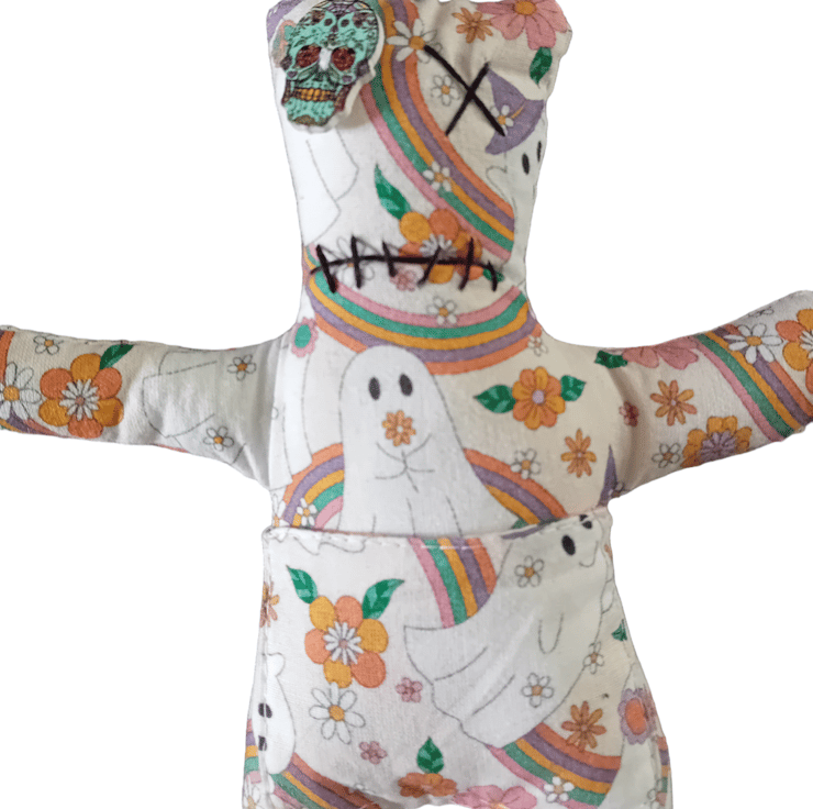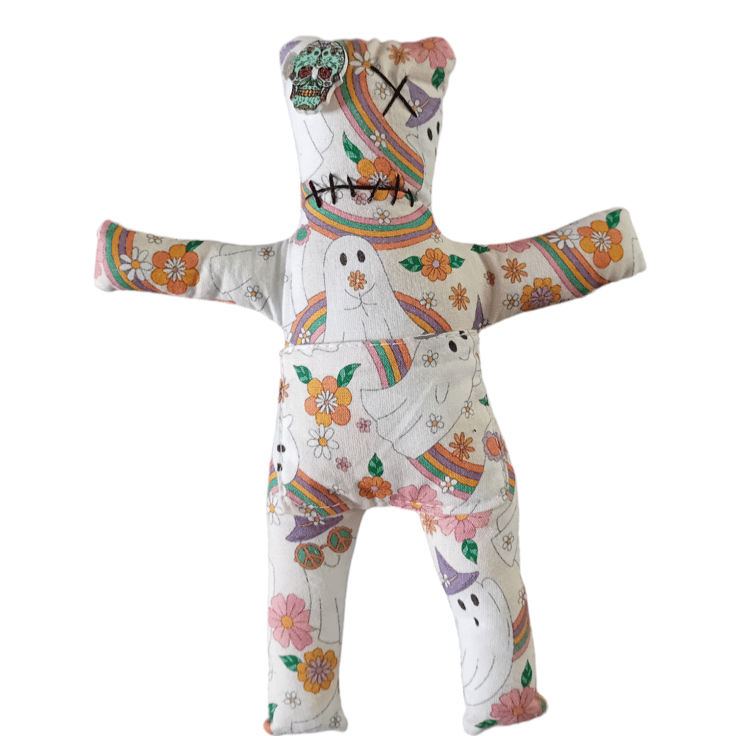 A worry doll in the style of a voodoo doll. Write your worries on a piece of paper and put it in their pocket to take your worries away. Dolls are approx 9 inches tall.
