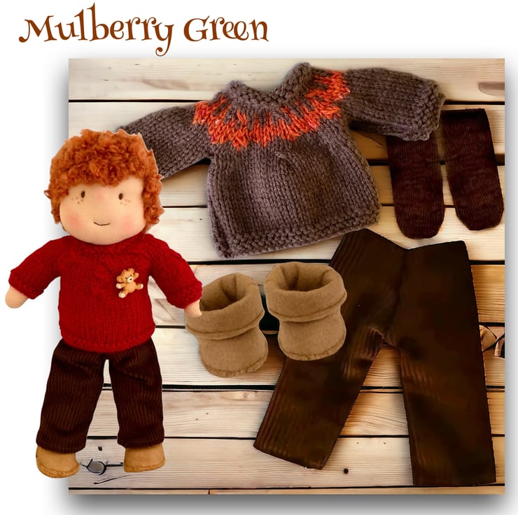 Mulberry Green is all about a time, now gone, but not so very long ago, when children had a great deal of freedom to explore their surroundings and use their imagination in play. A time when the world moved at a slower pace and things were made to last. To celebrate this heritage, wherever possible, I use traditional crafts and materials to create my dolls and outfits.