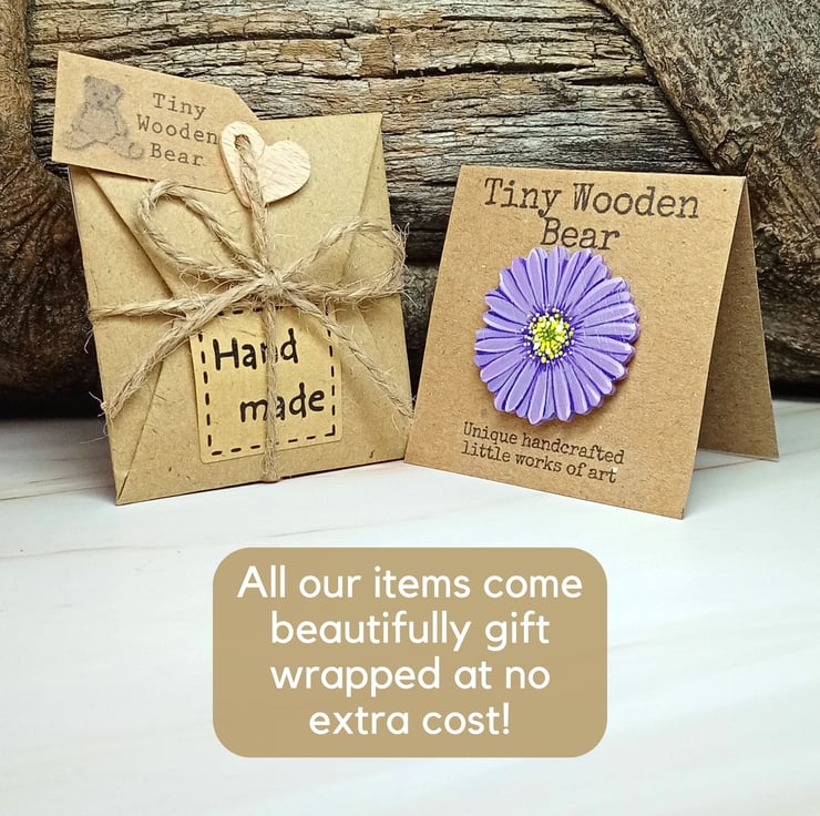 This flower brooch is totally unique - designed, hand crafted and hand painted by an artist. It’s small and highly detailed - you can see the brushstrokes of the artist who has signed it on the back. Each purchase is individually gift wrapped and beautifully presented using plastic-free packaging (100% recyclable)