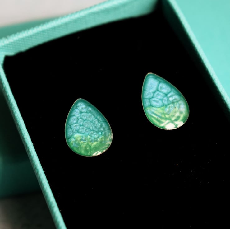 There's a bit of a mermaid feel to these stud earrings, I think it's the marbling of the blues and greens making me think of clear seas!