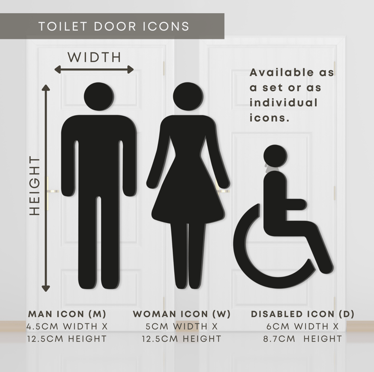 Enhance the look of your restroom doors with our chic acrylic toilet door icons. Perfect for any establishment, these icons are available individually or as a complete set, and come in a variety of colours to match your decor. Crafted from durable acrylic, these icons feature clear and recognisable designs for men, women, and disabled people. Each icon is designed for easy installation and offers a modern, professional appearance. Ideal for businesses, offices, restaurants, and public facilities, our toilet door icons ensure clear identification while adding a touch of style to your space.