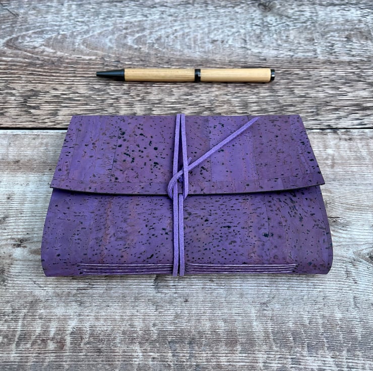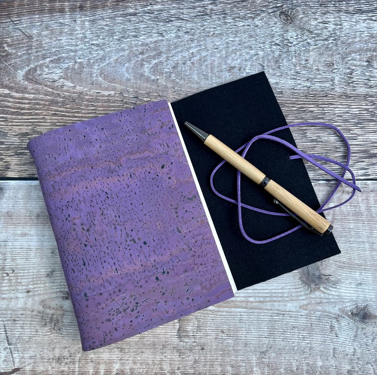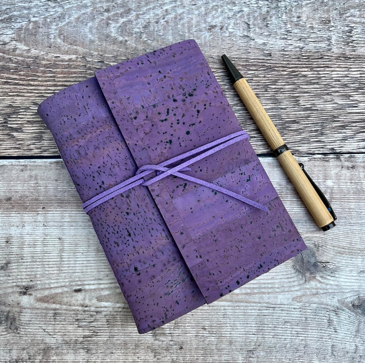 This A6 cork journal notebook is handcrafted with sustainable cork in a beautiful shade of lavender purple. It is also perfect as a sketchbook.