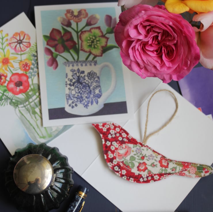 I love finding ways to repurpose little odds and ends of fabric and so trialled these little birds a couple of years ago. They have proved hugely popular, particularly at Christmas, whether dangling from a tree, twirling on a shelf or decorating a special gift. I've always been a huge fan of Liberty loveliness and had great fun using these snippets of fabric - I'm delighted with the way that they have turned out and will be using them as gift tags on a variety of presents this year.