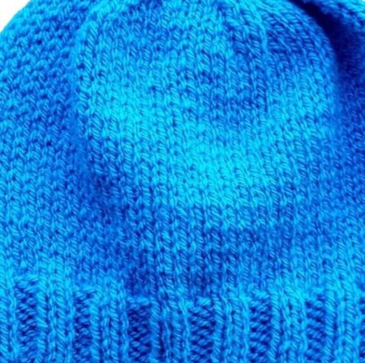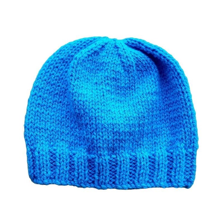 Perfect for newborns up to 3 months old, this Blue hand knitted hat has a circumference of approximately 14 inches (35 cm) for a secure and comfortable fit. When laid flat, it measures 6 inches (15.25 cm) across the bottom and 6 inches (15.25 cm) from crown to bottom.