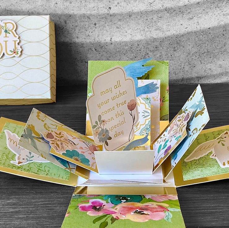 An exploding luxury 3D keepsake box card is a fun and unique way to surprise someone on their special day!