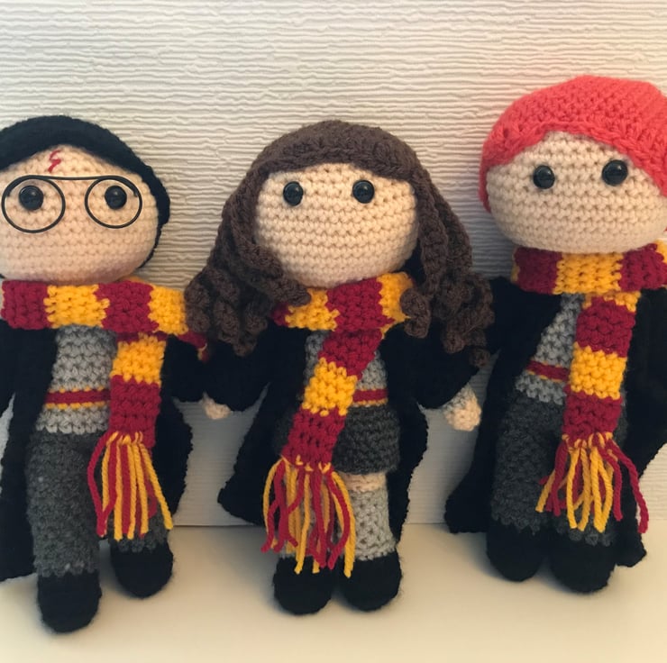 Super cute hand crocheted Harry Potter character dolls for any fan of this fantastic film franchise. Choose from Harry, Ron, Hermione, Dumbledore or Hagrid. You can also purchase Harry with Hedwig. Removable cloak and scarf.