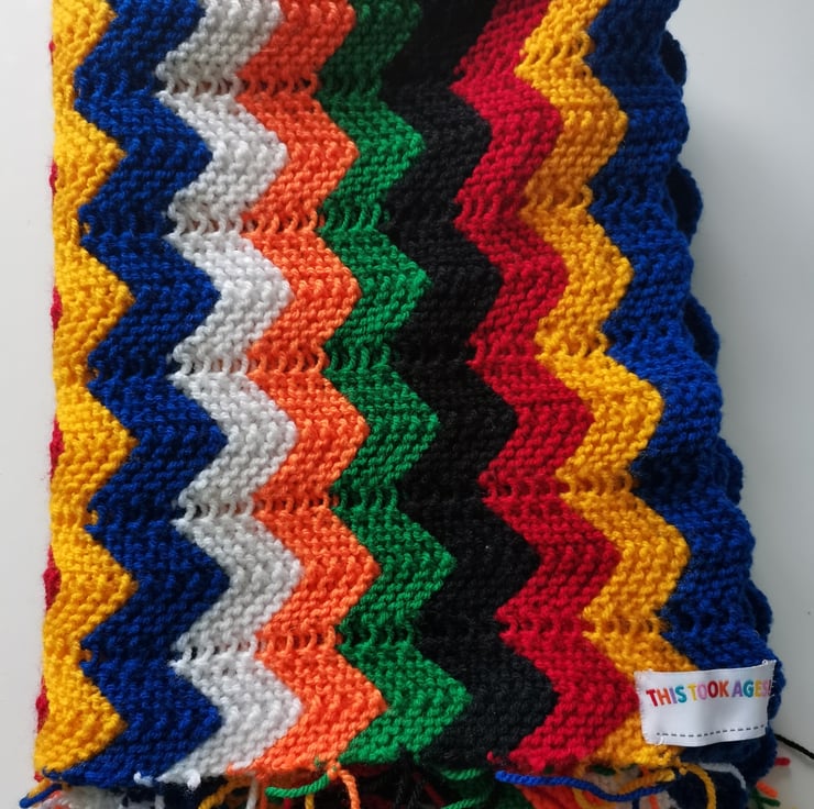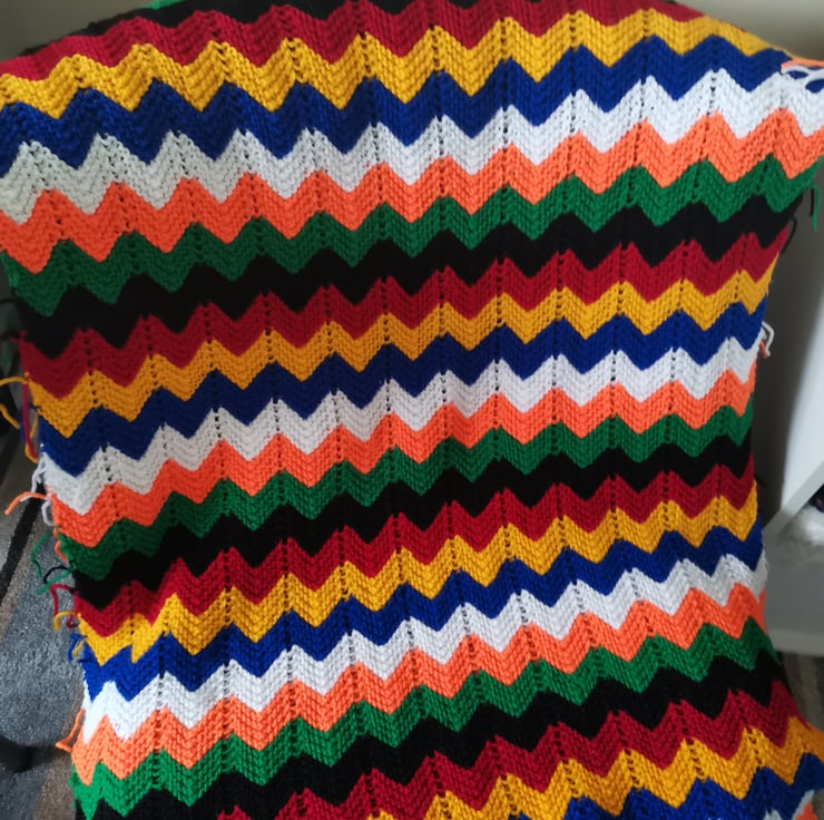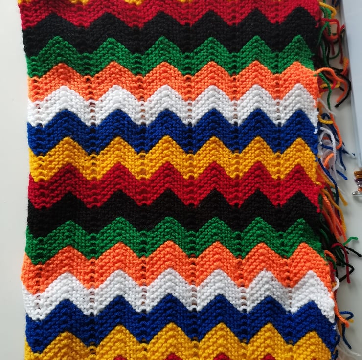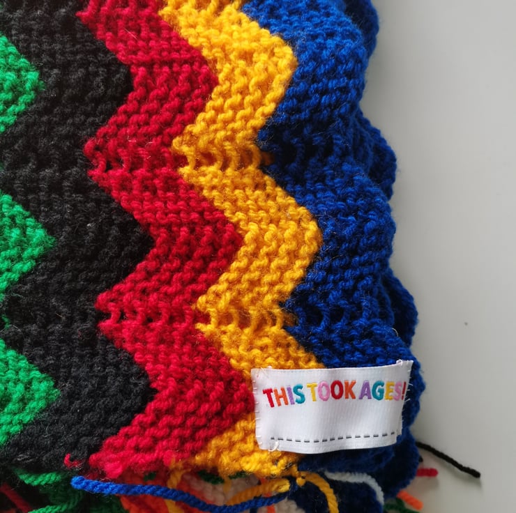 I just love how bright and cheery the colours are and I decided to do a Tom Daley and not weave my ends in and have them as tassels instead. This can also be used as a throw for small chairs.