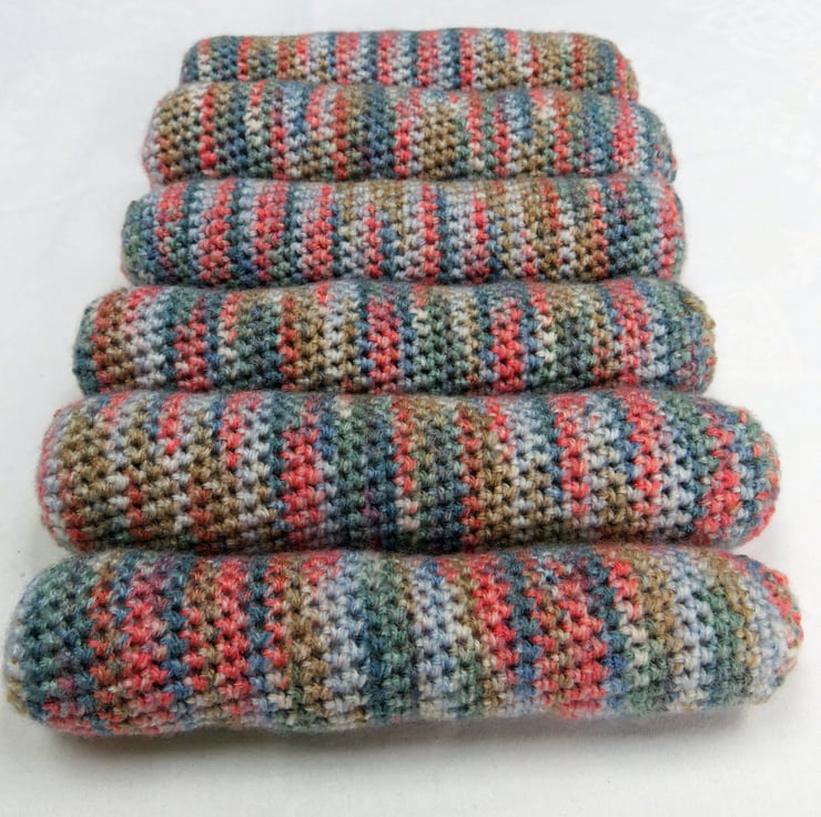The stuffing is predominantly made up of my weaving waste yarn as well as some of my crochet waste yarn and therefore is mostly natural fibres. - outer shell is acrylic yarn