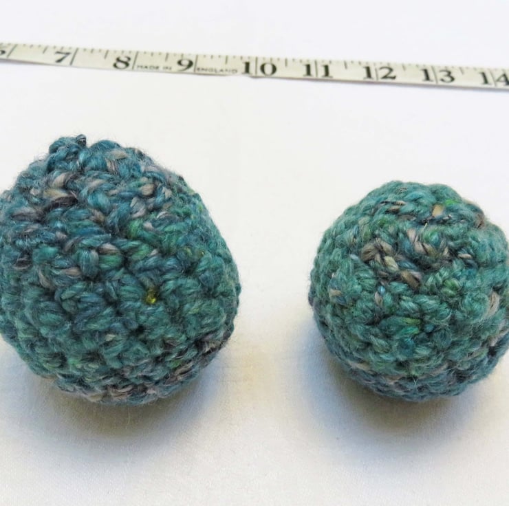 Having seen many pets, both cats and dogs, destroy their toys, and the synthetic stuffing that is often used, I decided to use my waste yarn as the vast majority of it is natural.