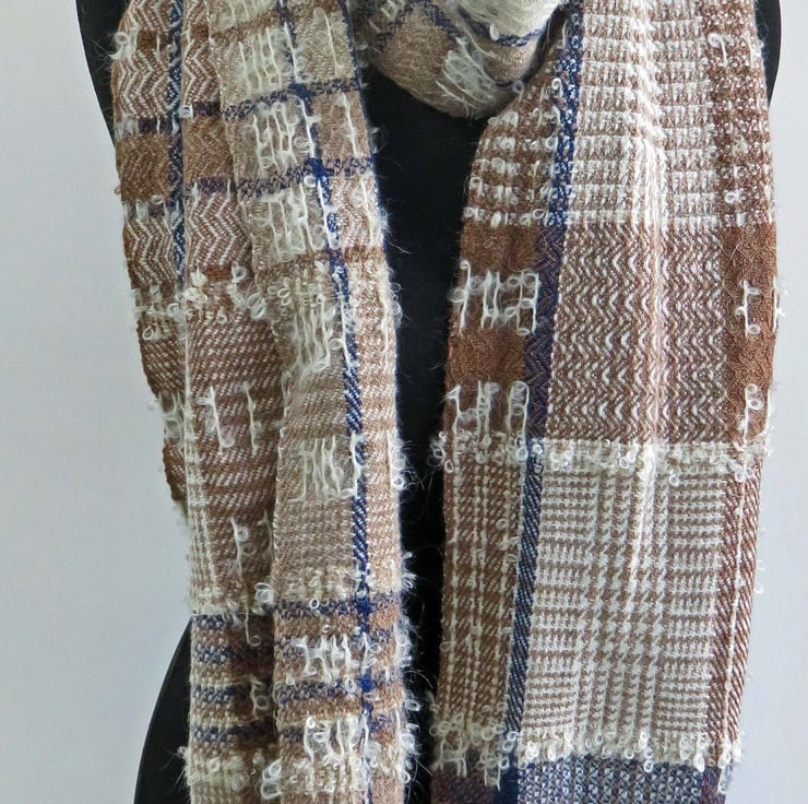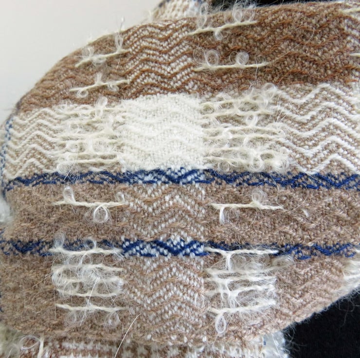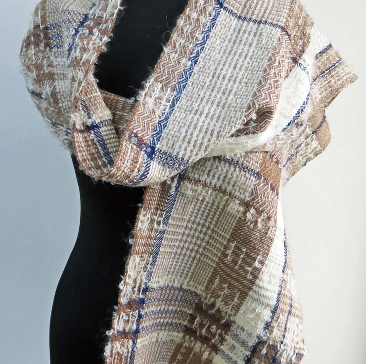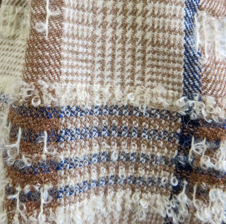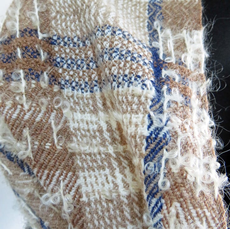 Made in lambs wool and merino wool with a mohair boucle extra warp.