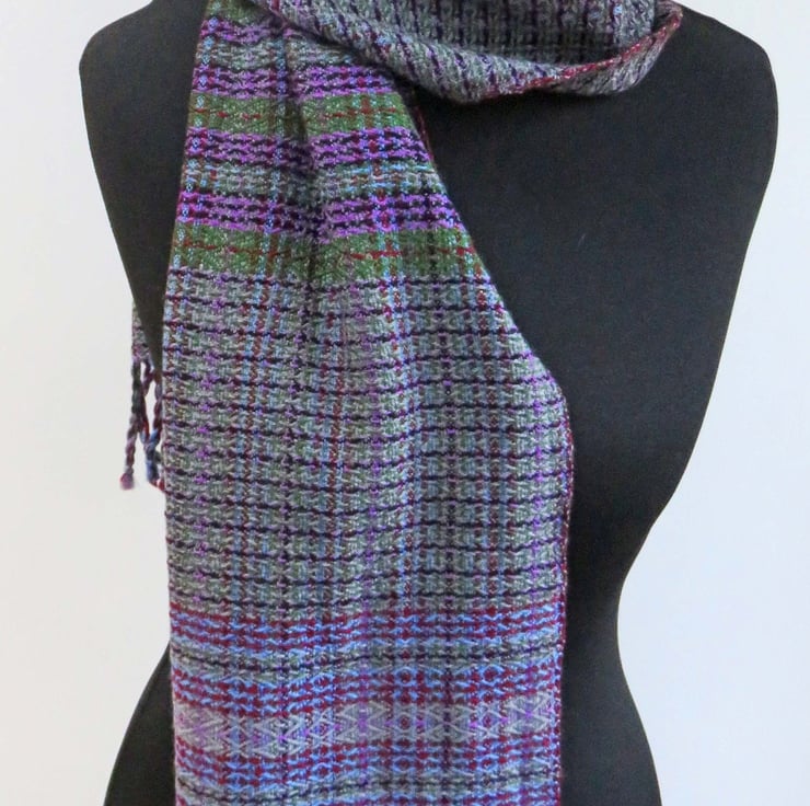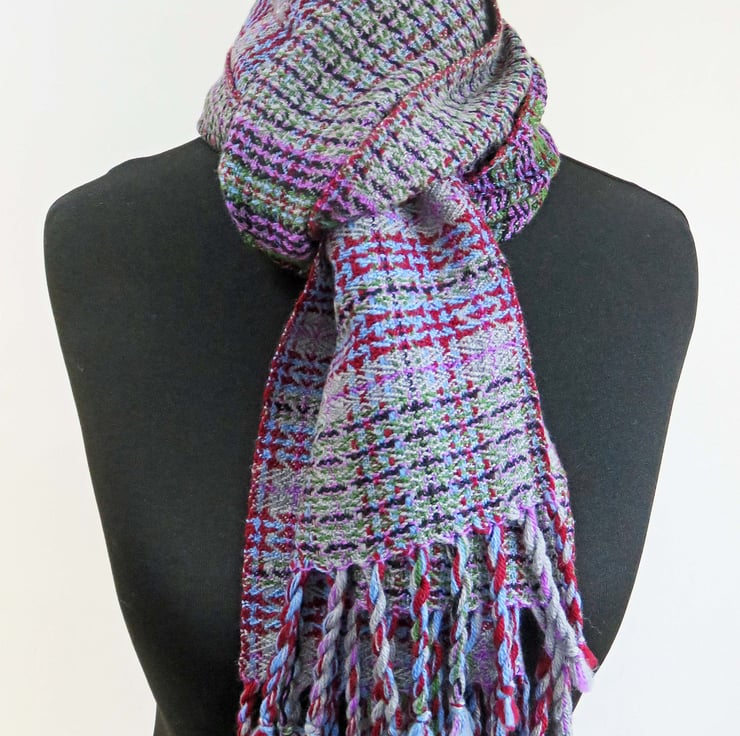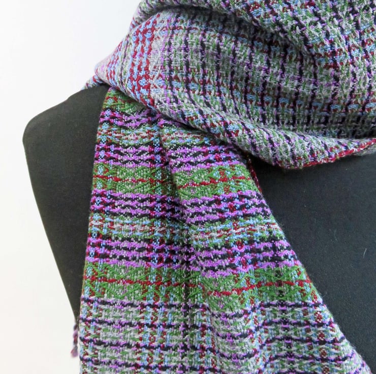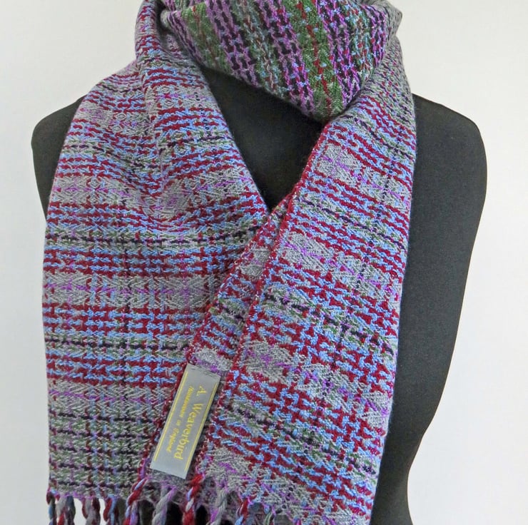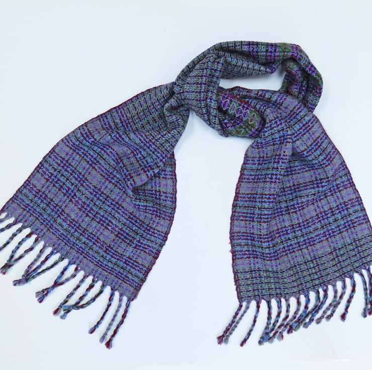 A handwoven tartan scarf, made from 100% fine Merino wool. This scarf was woven on my Table Loom, meaning everything is done entirely by hand, and then finishing includes: hemstitching, twisting the tassels, washing, attaching the label and pressing.