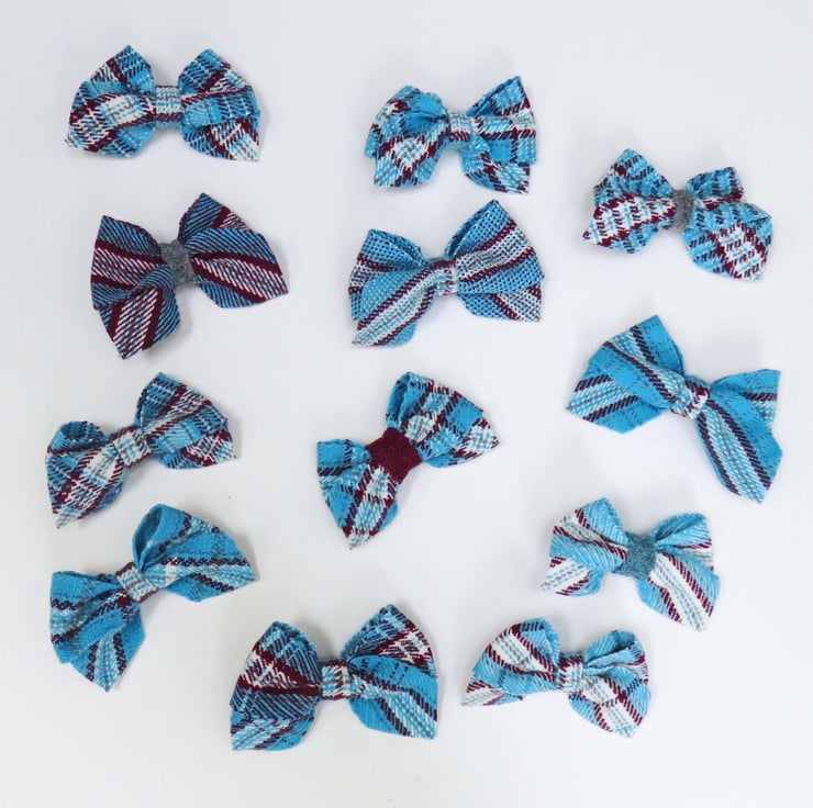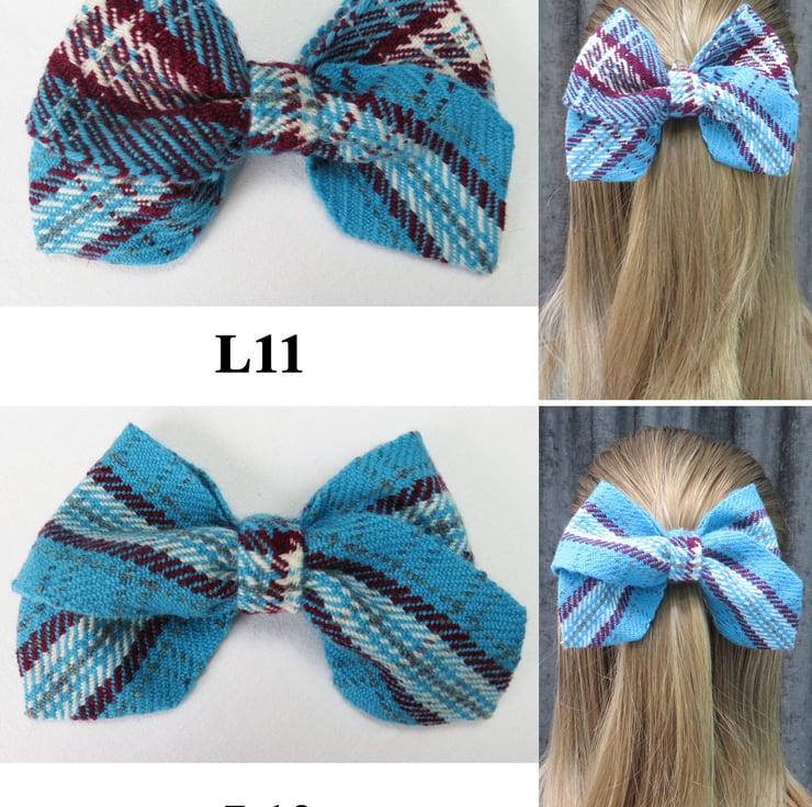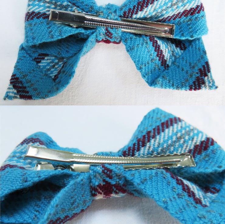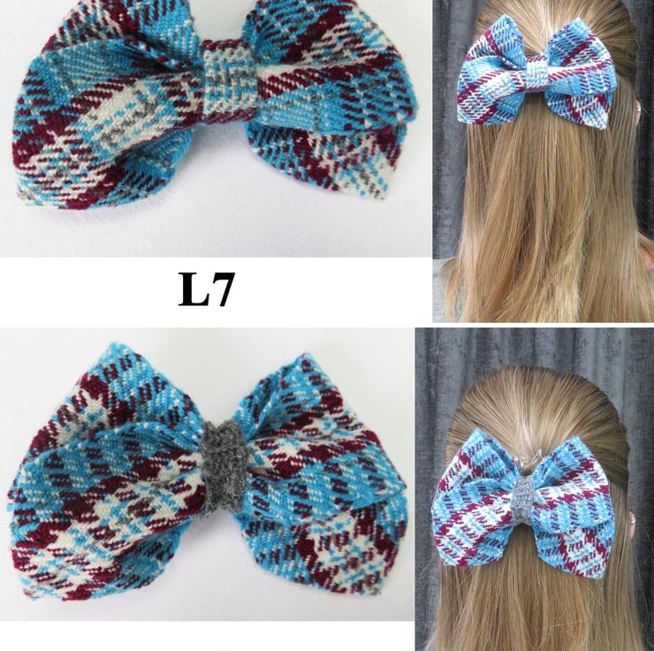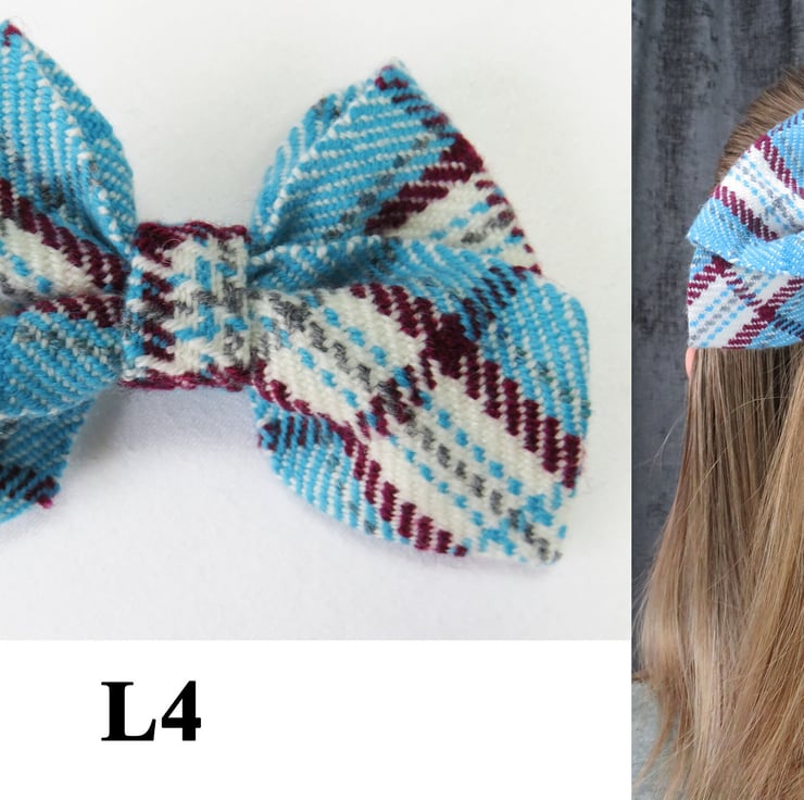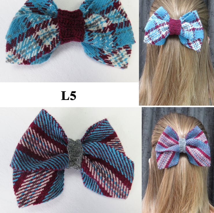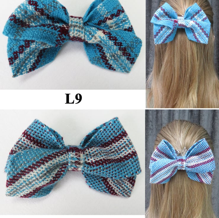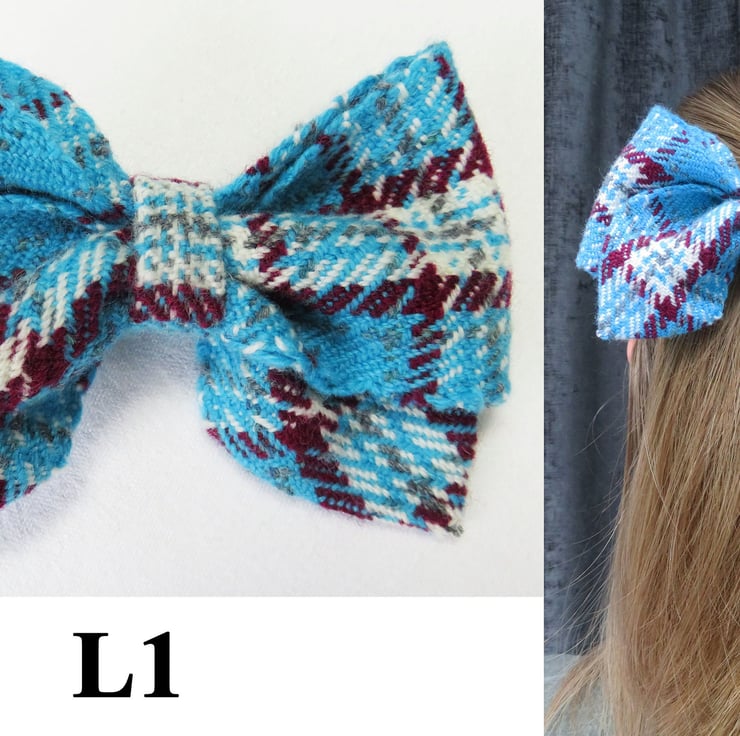 Handwoven and hand finished bows made from lambswool and Shetland wool, with an alligator clip.