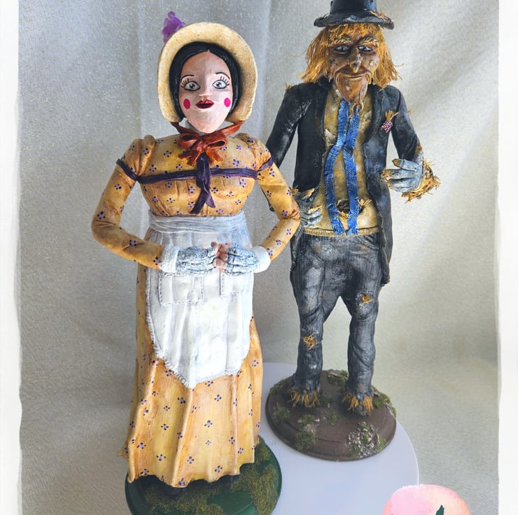 OOAK handmade sculptures of the 80s kids TV of Worzel & Sally.