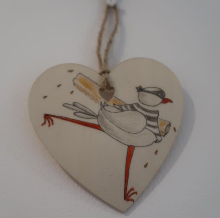 This fun cartoon of the Great British seagull measures 10x10cm and is hung by an upcycled string loop which adds approximately an 8cm drop.