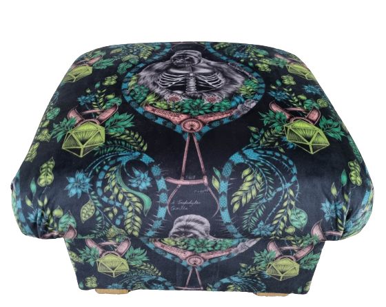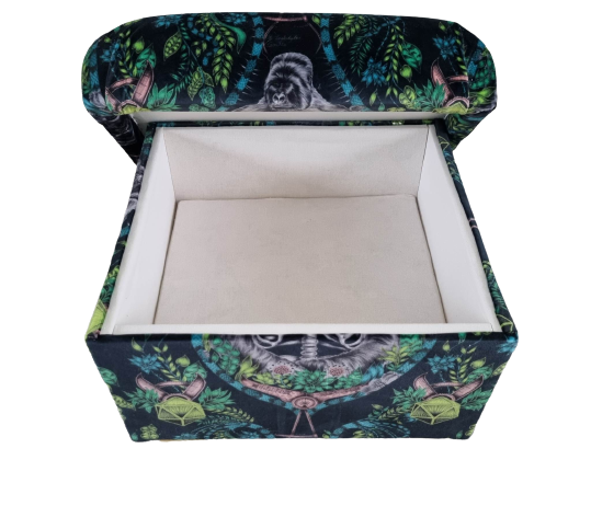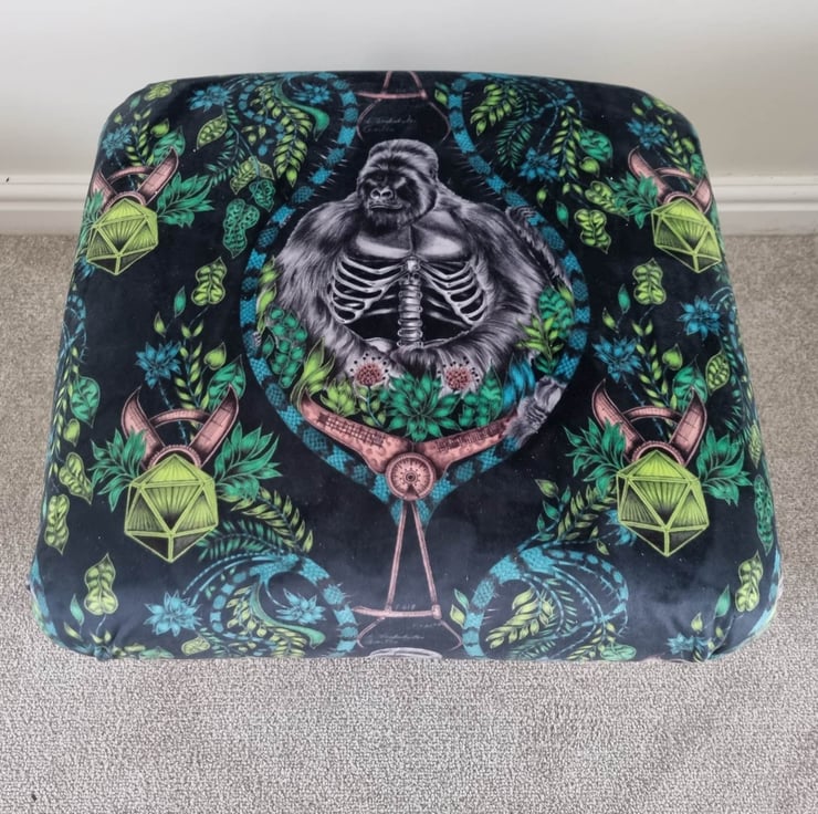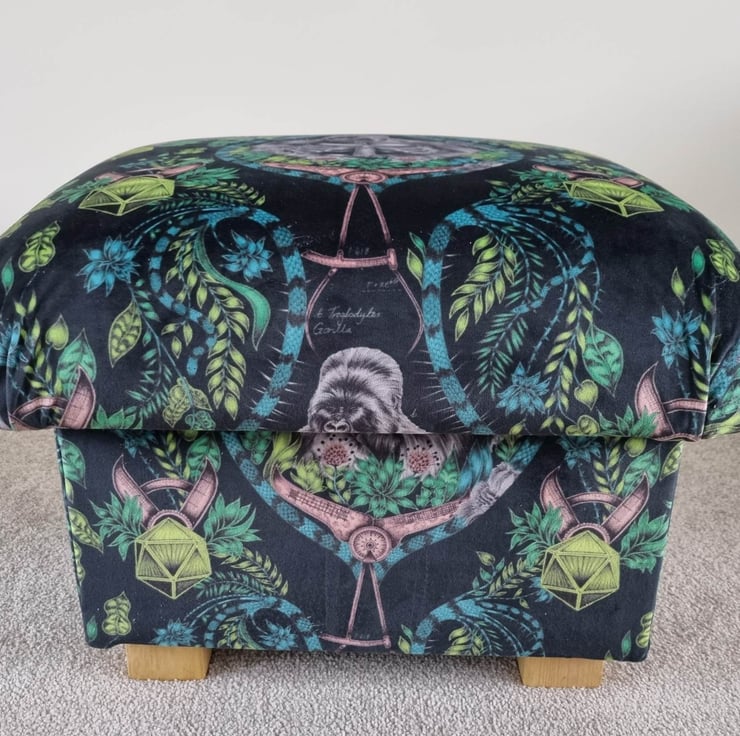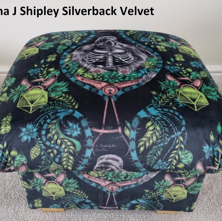 I am a professional upholsterer with over 33 years experience, and have handmade this adult sized STORAGE footstool using Emma Shipley Silverback Velvet fabric.
