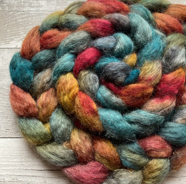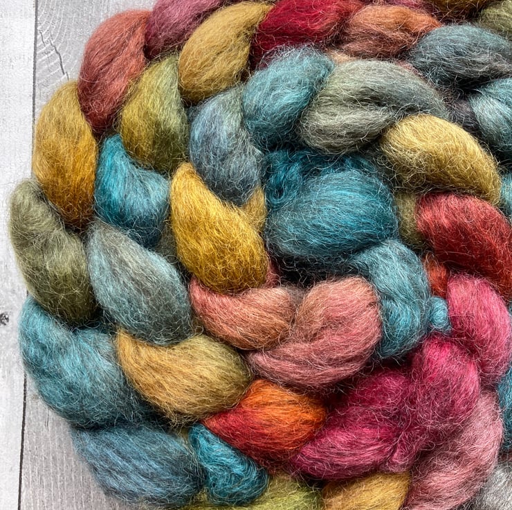 Approximately 100g hand dyed by me as shown.