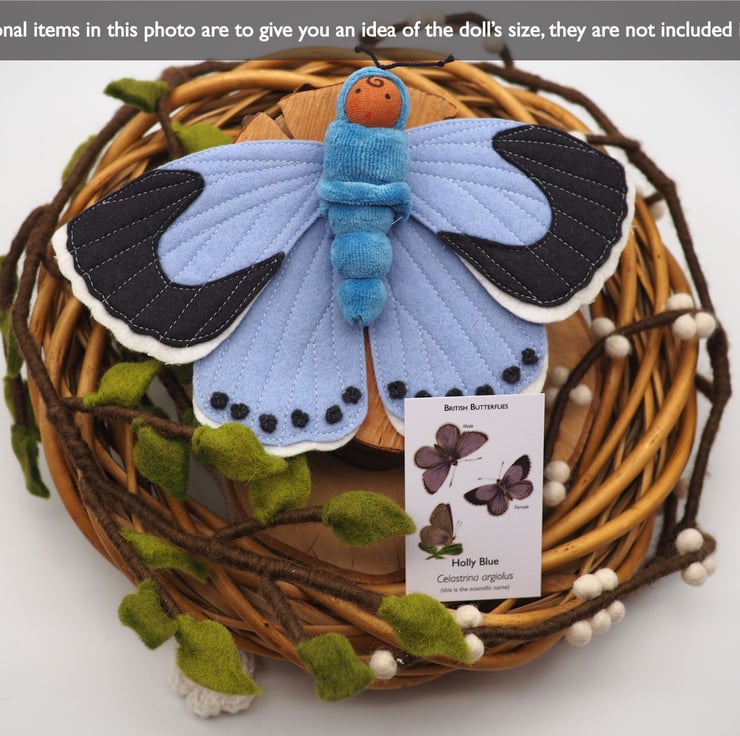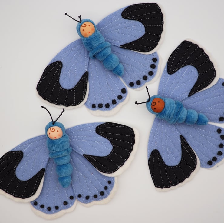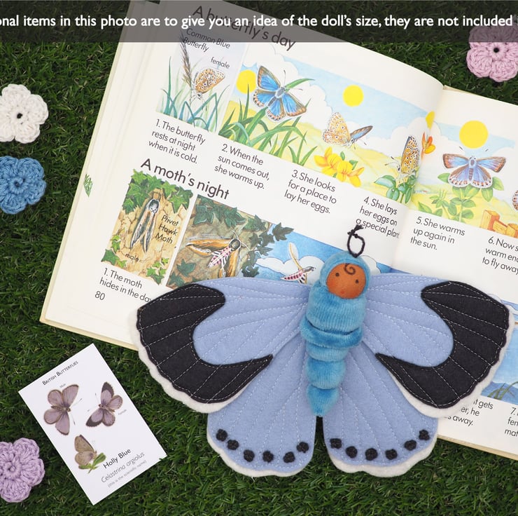 The butterfly doll has detachable wings - simply pull the doll out of the soft scrunchie - and then the little doll could be a caterpillar!