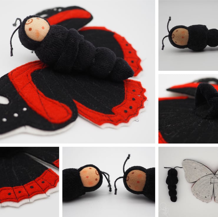 The butterfly doll has detachable wings - simply pull the doll out of the soft scrunchie - and then the little doll could be a caterpillar!