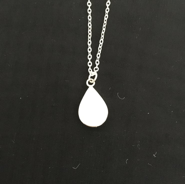 The pendant measures 0.65 in x 0.35 in and is finished with an 18 in chain.