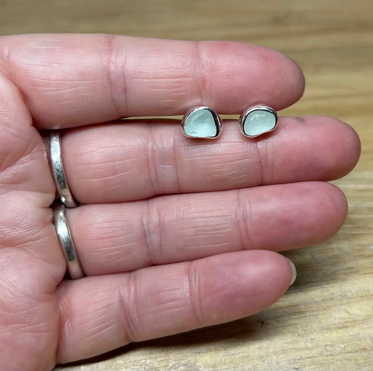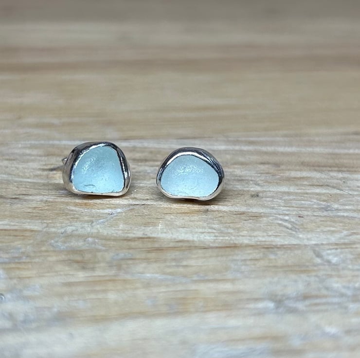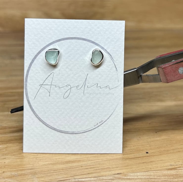 Gorgeous Welsh sea glass stud earrings handmade with sterling silver. Each piece of sea glass is handpicked by myself from a beach in North Wales and set in silver in the shape and size it’s found! Simply stunning, these stud earrings are my most popular item.