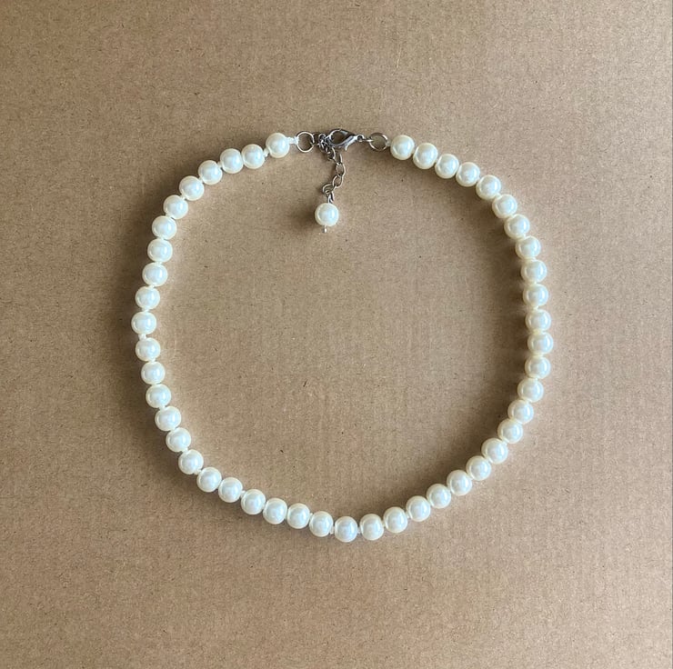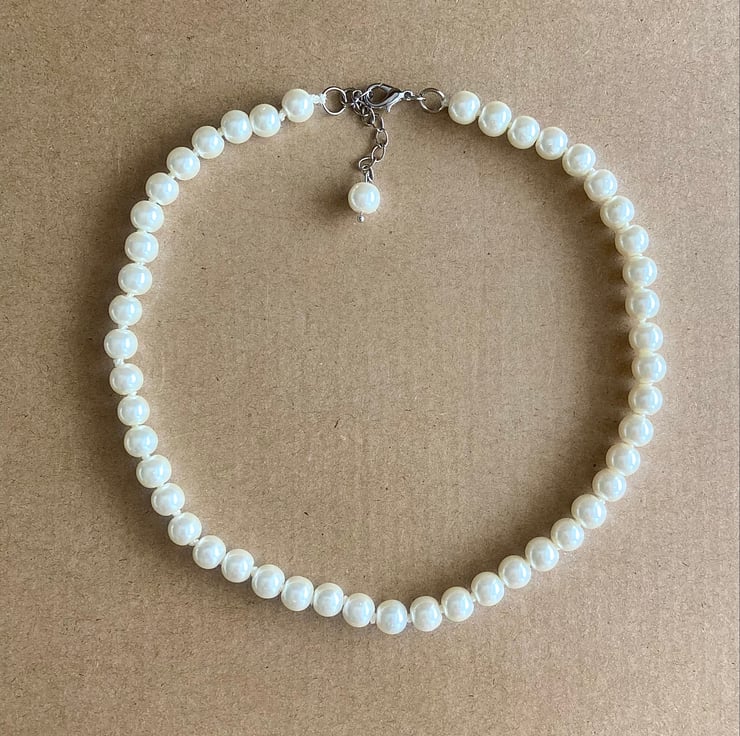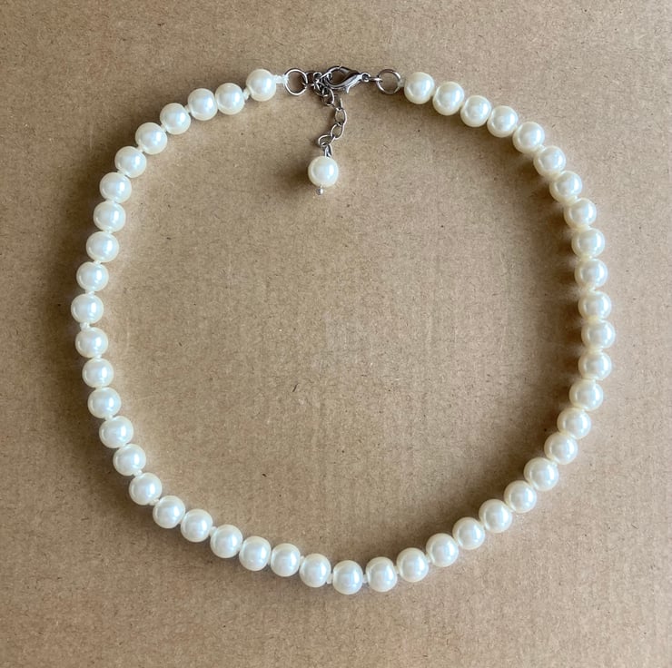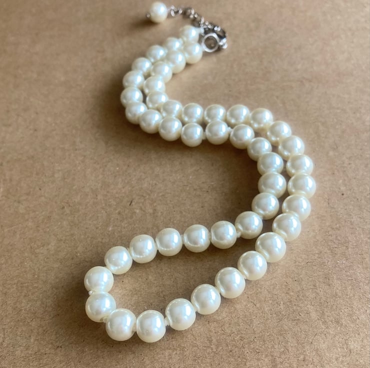 Gorgeous hand knotted 7mm acrylic faux pearl 15.5'' long necklace - handmade gift - party jewellery - wedding
