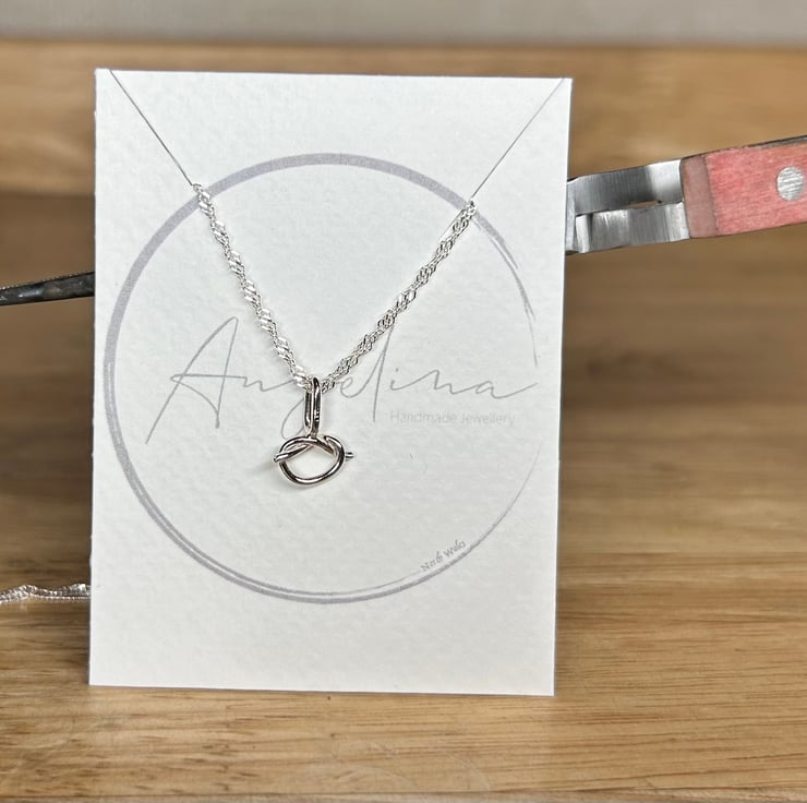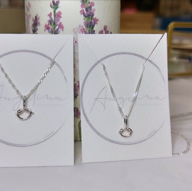 Lovely delicate sterling silver hand tied love/friendship eternity knot pendant, handmade cuteness! Perfect gift for loved ones. Comes on a 16’’ sterling silver twisted curb chain. (Longer chains available at 18’’ or 20’’ please leave a note when ordering if longer is required).