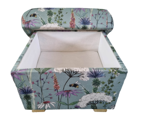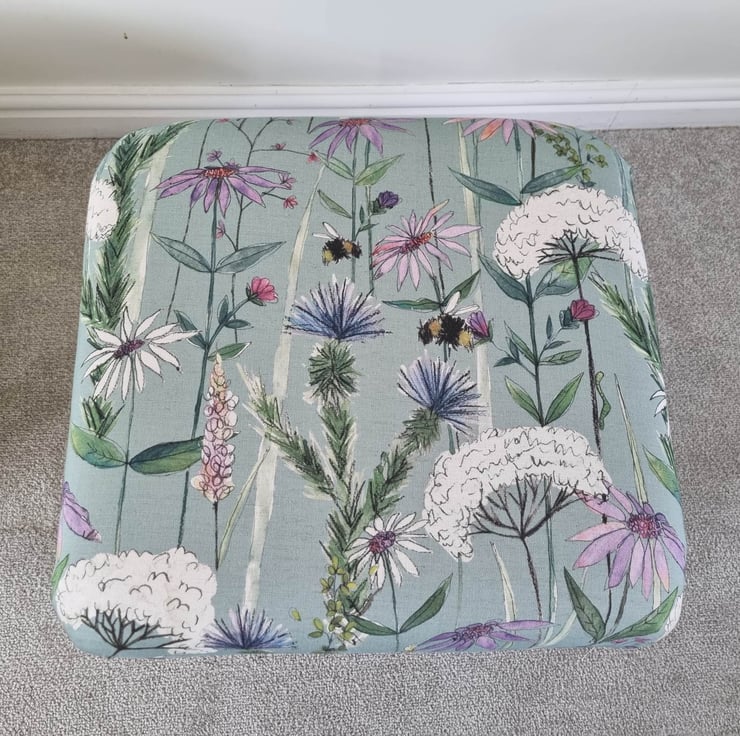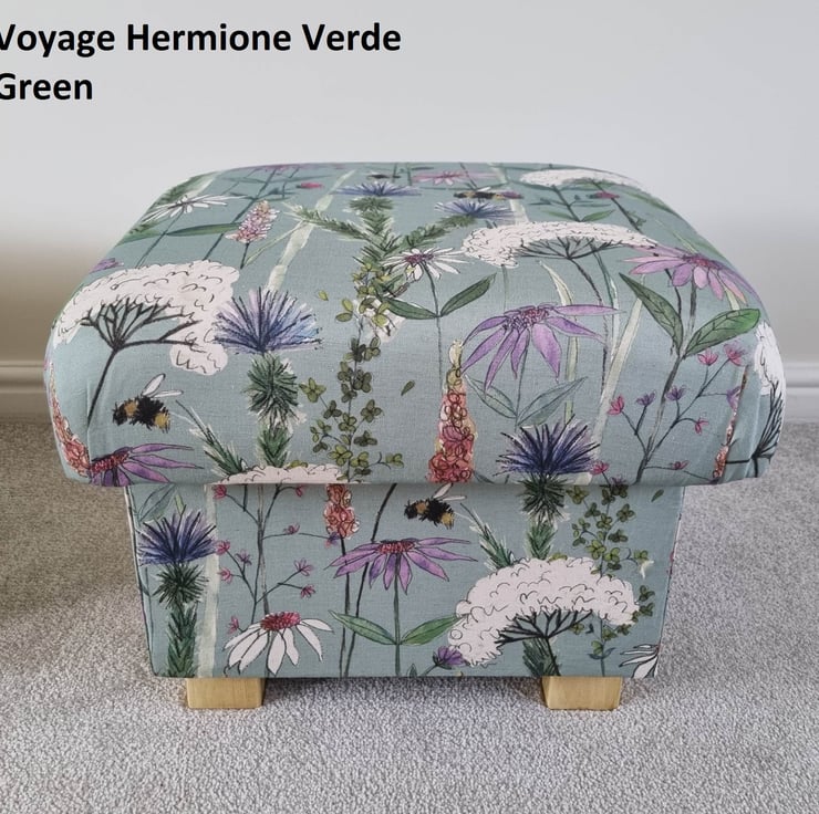 I am a professional upholsterer with over 33 years experience, and have handmade this adult sized STORAGE footstool using Voyage Maison Hermione Verde Green fabric.