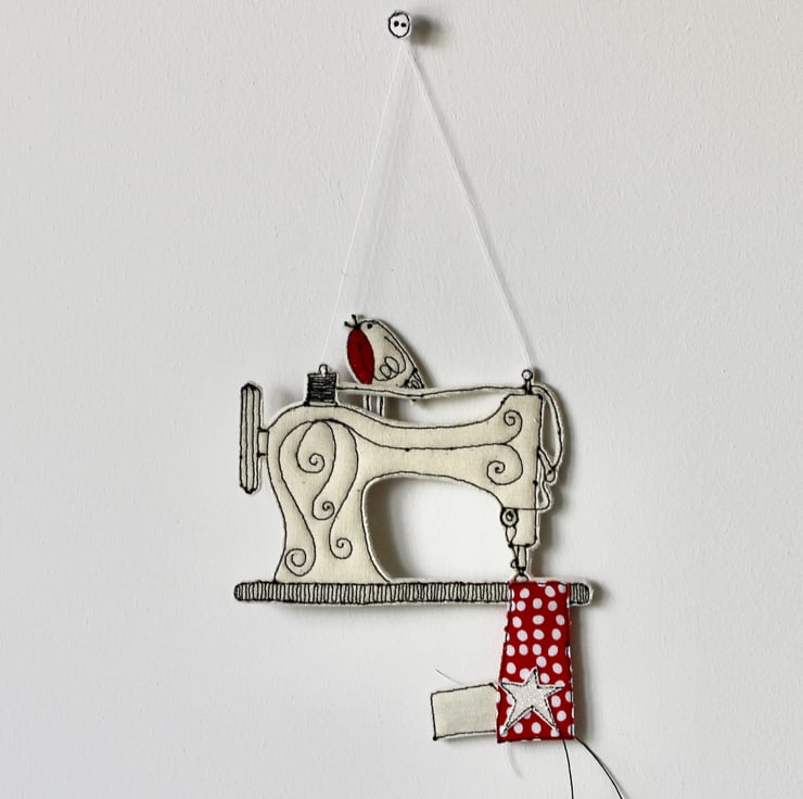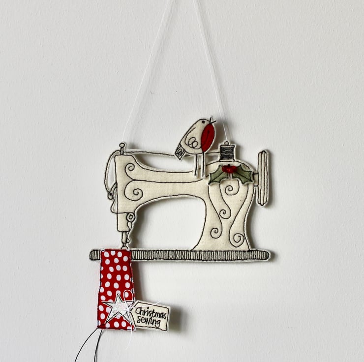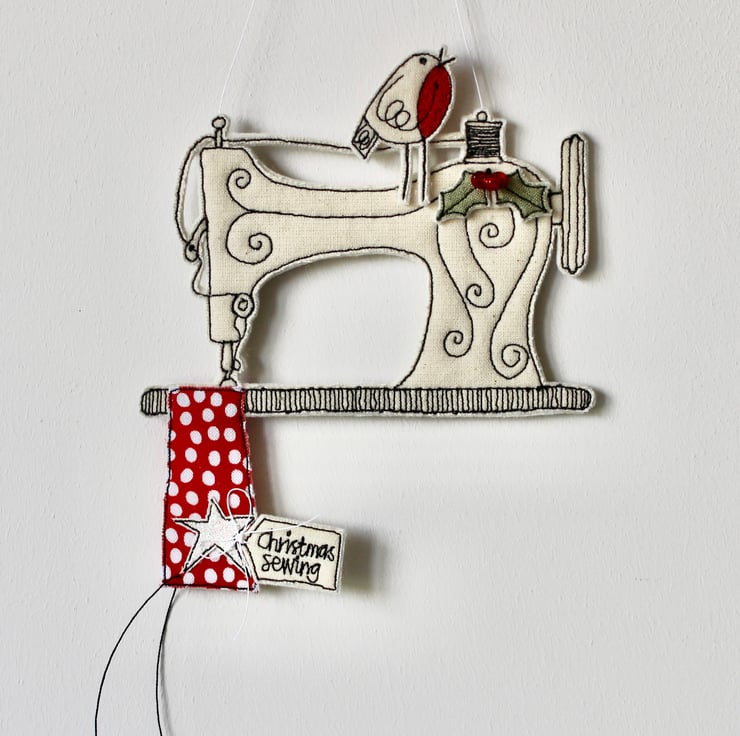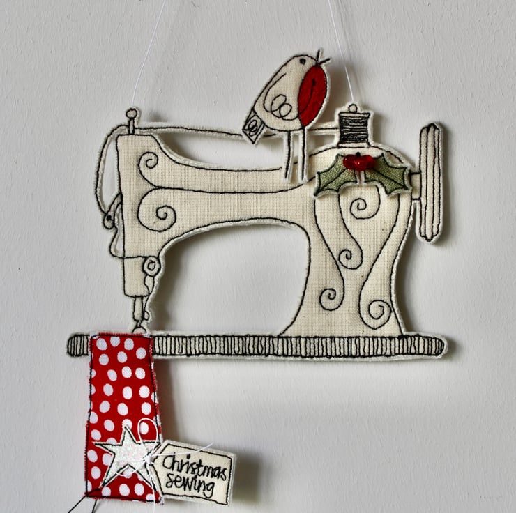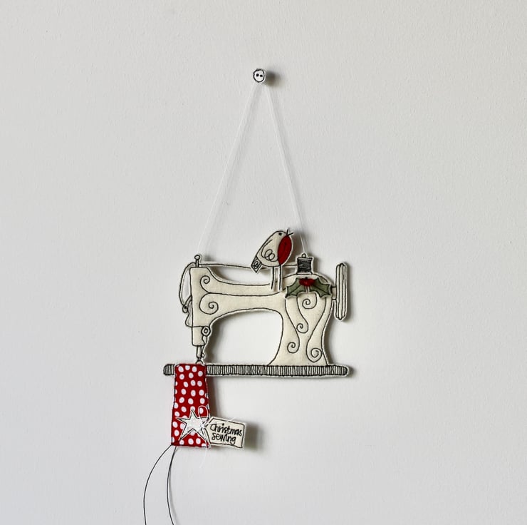 Suspend 'Christmas sewing' sewing machine using the linen thread loop and add a sewing dimension to your home at Christmas or it makes a unique present for that special person who loves to sew.
