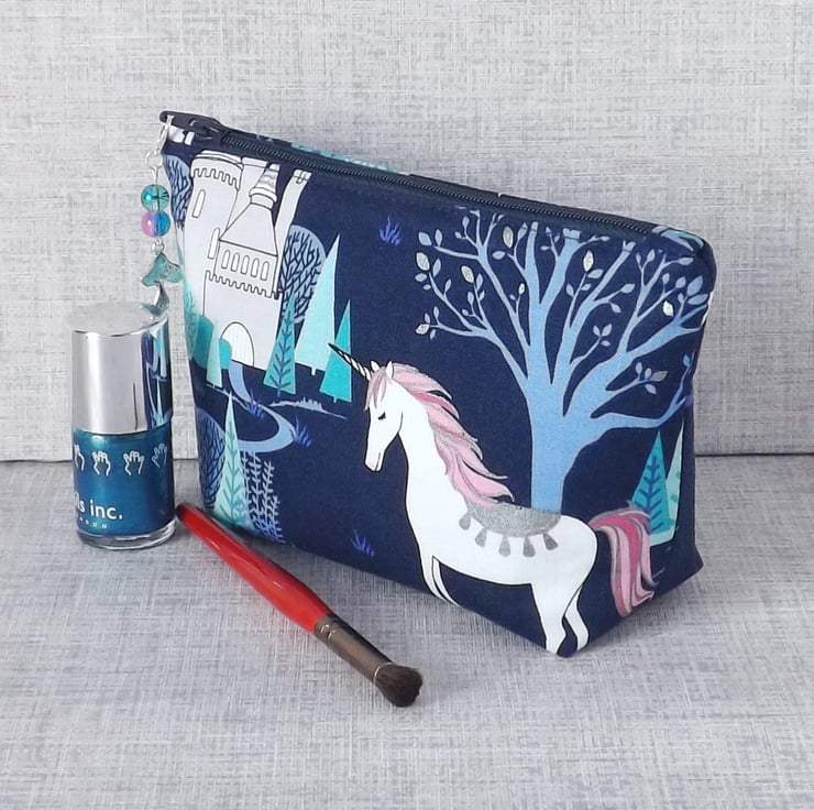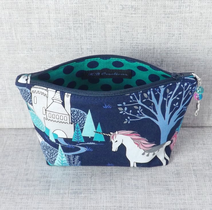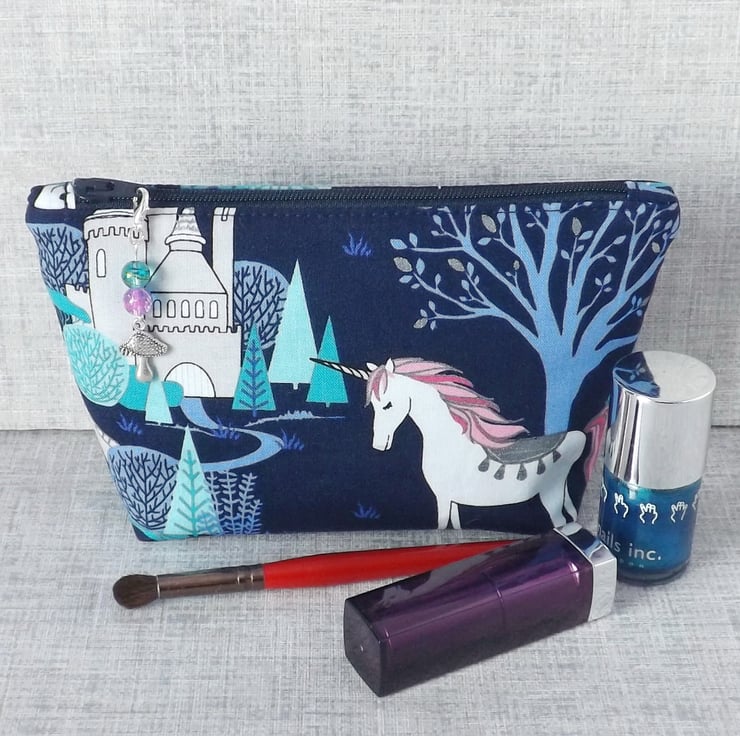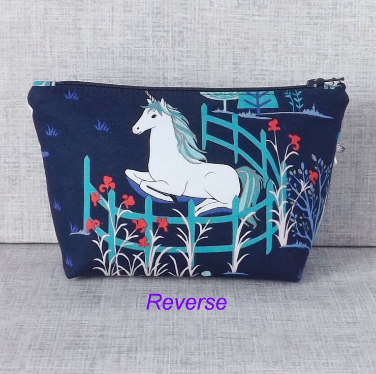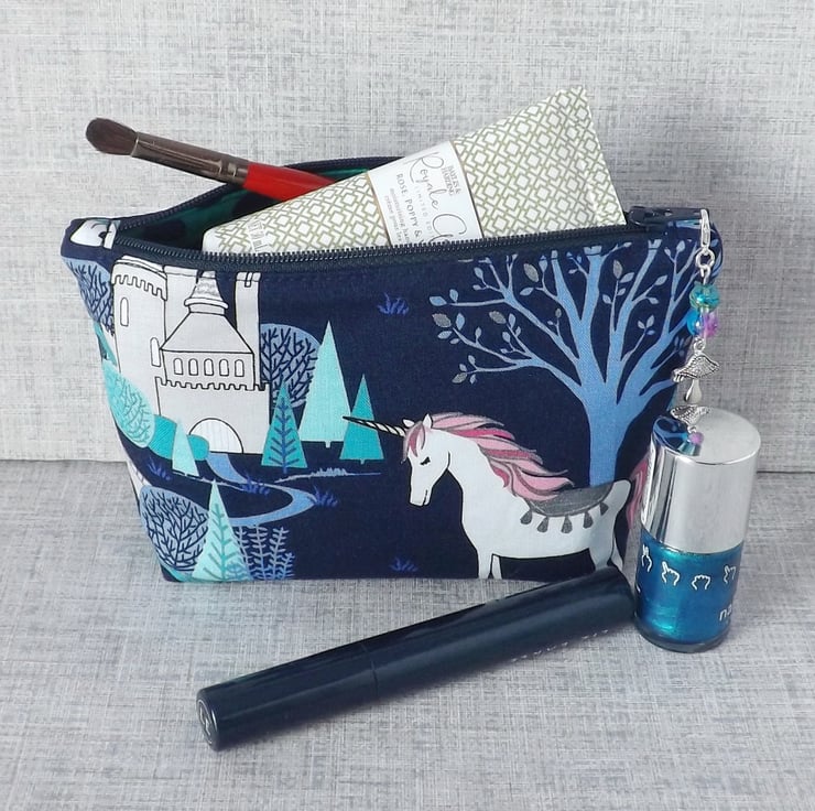 A medium sized make up bag, zipped pouch made from 100% cotton fabric.