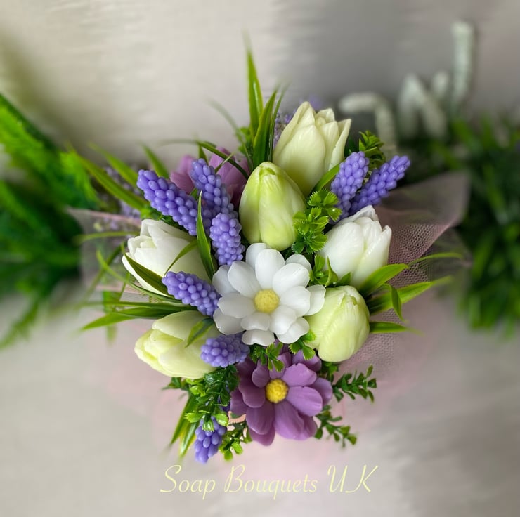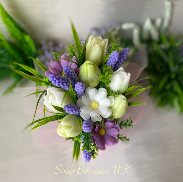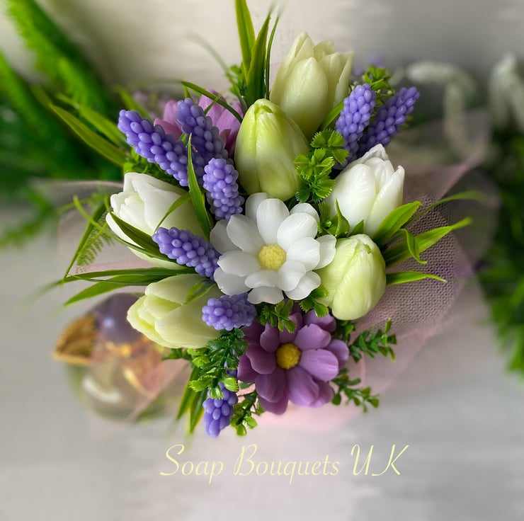 Handcrafted Solid Soap Bouquet of Tulips, Chrysanthemums, and Lavender