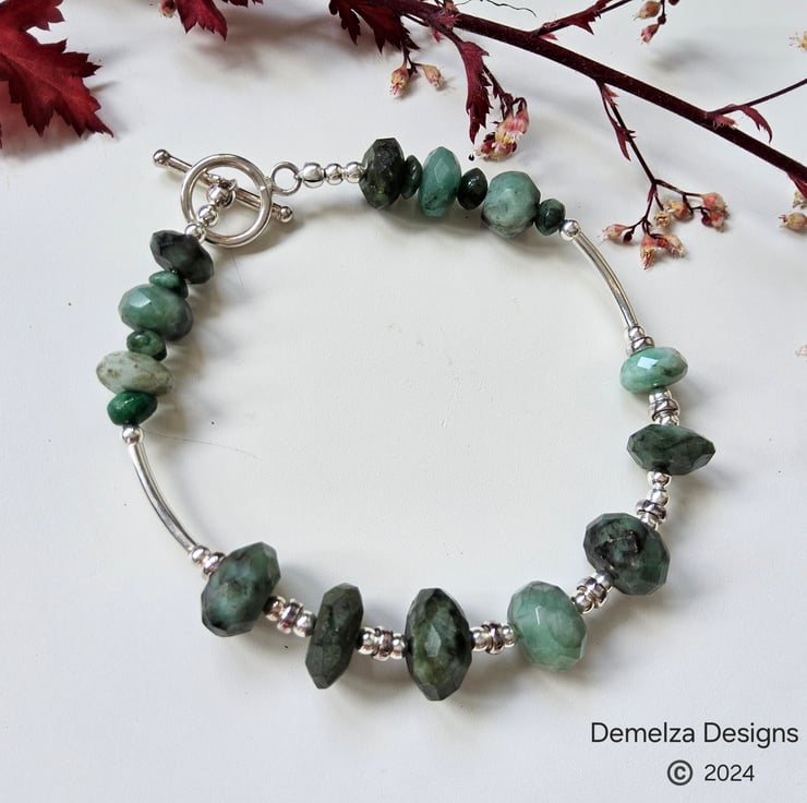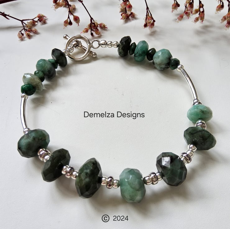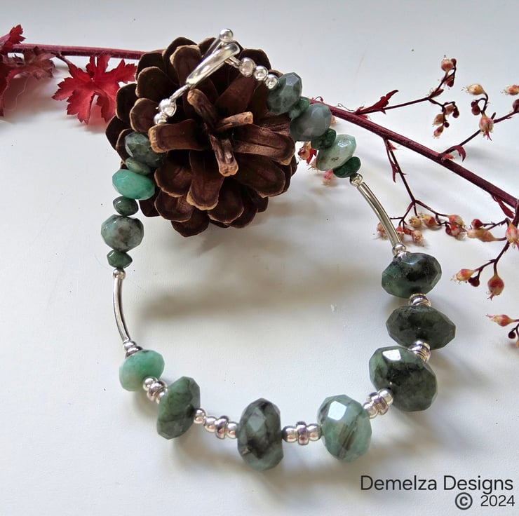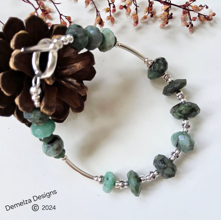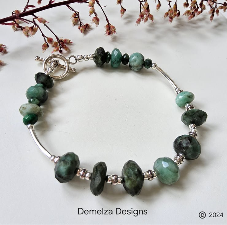 This gorgeous unique raw natural emerald bracelet has been designed and hand crafted in Cornwall.