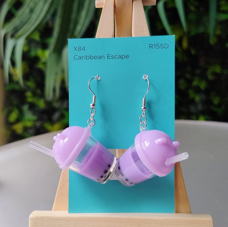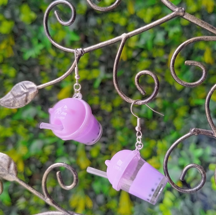 Funky lilac bubble tea earrings