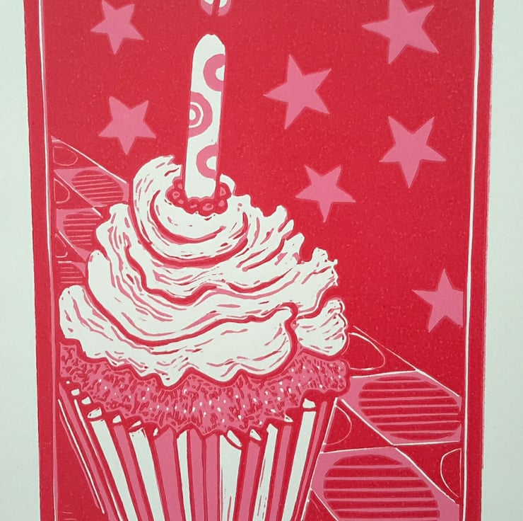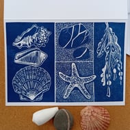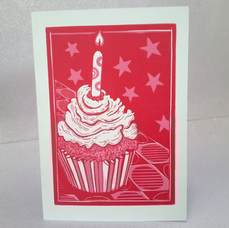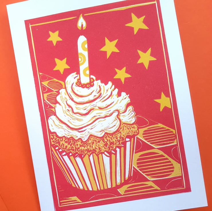 Original lino printed greetings card. This is not a reproduction each card is printed using two linocuts directly onto the card.