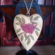 Wooden folk heart pendant decorated with Celtic knotwork using pyrography (wood burning) with upcycled green stone beads taken from a broken necklace.