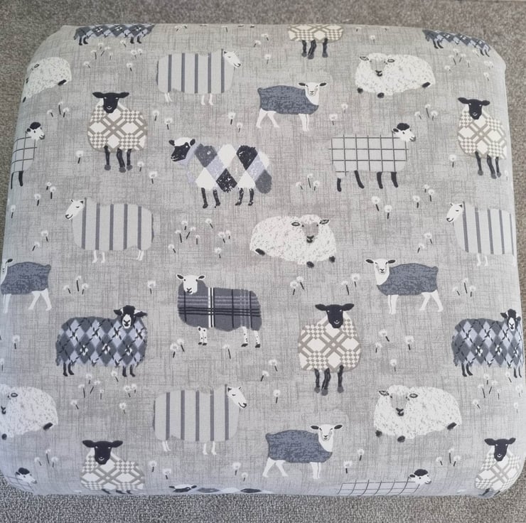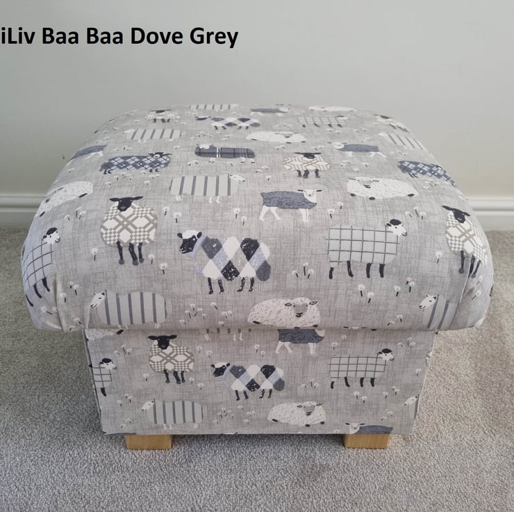 I am a professional upholsterer with over 33 years experience, and have handmade this adult sized STORAGE footstool using iLiv Baa Baa Sheep in Dove grey fabric.