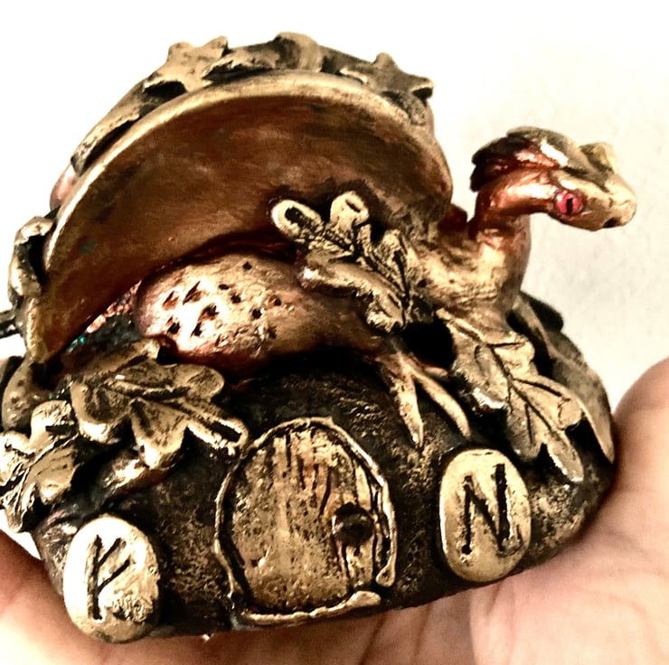 I have surrounded this beautiful dragon with Runes, also created with air dry clay.