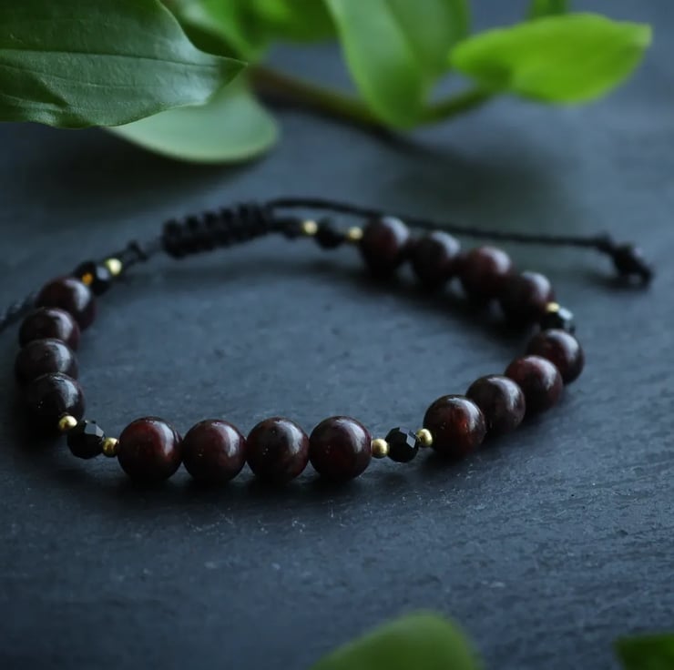 Women's bracelet with natural stones garnet and Tourmaline