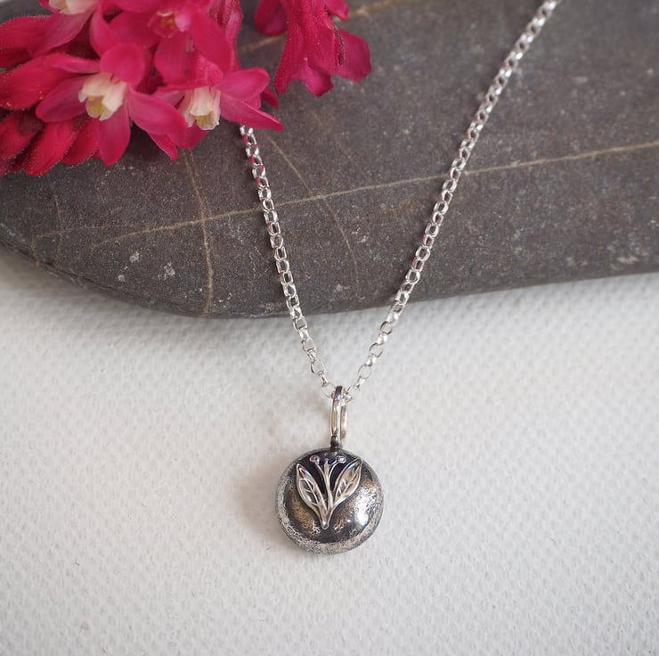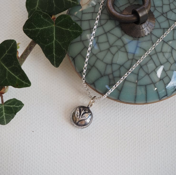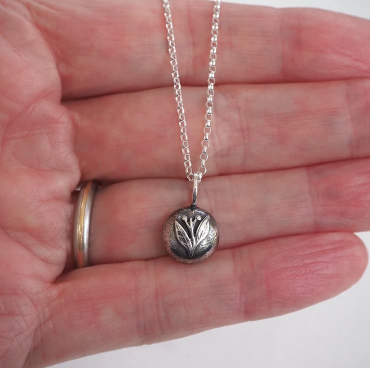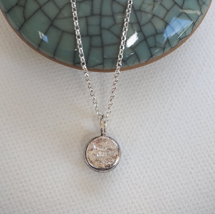 I have left the reverse of the pendant with the interesting marks and texture that comes from molten silver. This gives it a lovely organic and natural appearance.