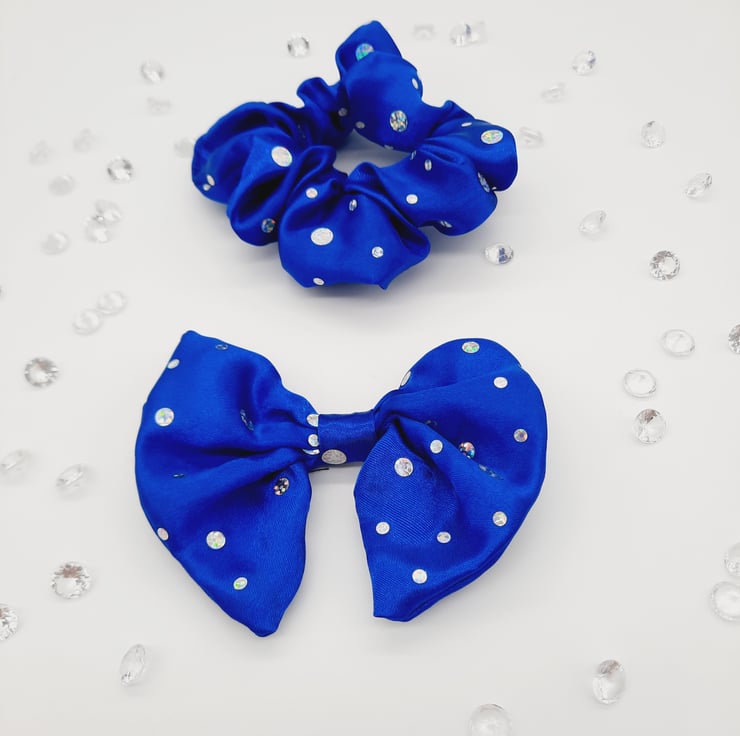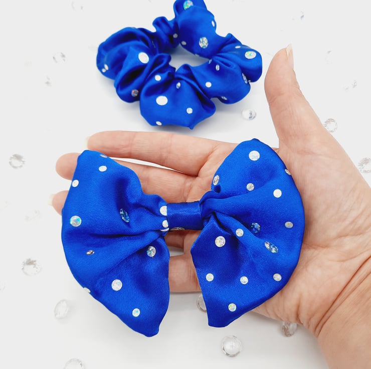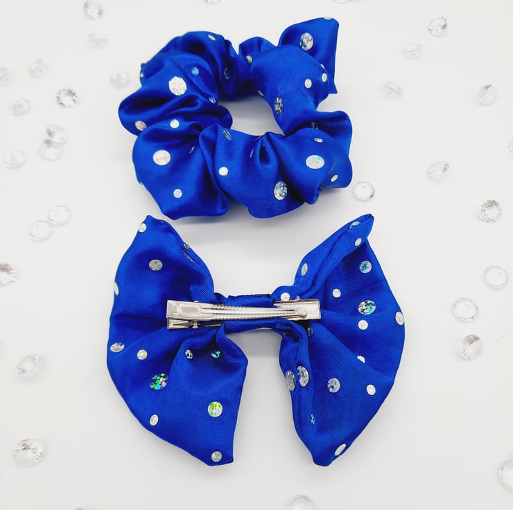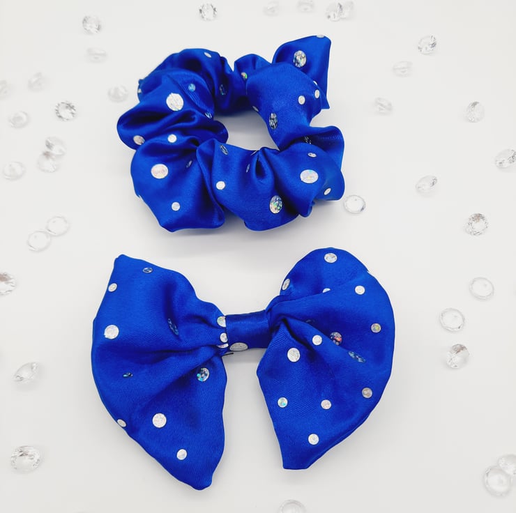 I've used Royal blue holographic satin to create this gorgeous hair accessory set.
